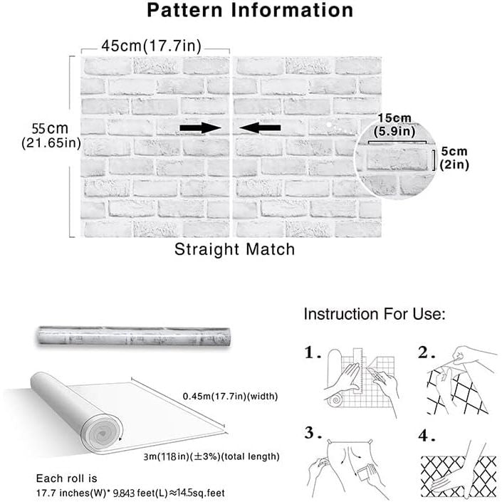 - Product Information : Size: 17.7 inches×118 inches, Material: PVC/Vinyl peel and stick wallpaper. looks realistic brick texture. 3D visual effect. Thickened, quality upgraded, strong coverage