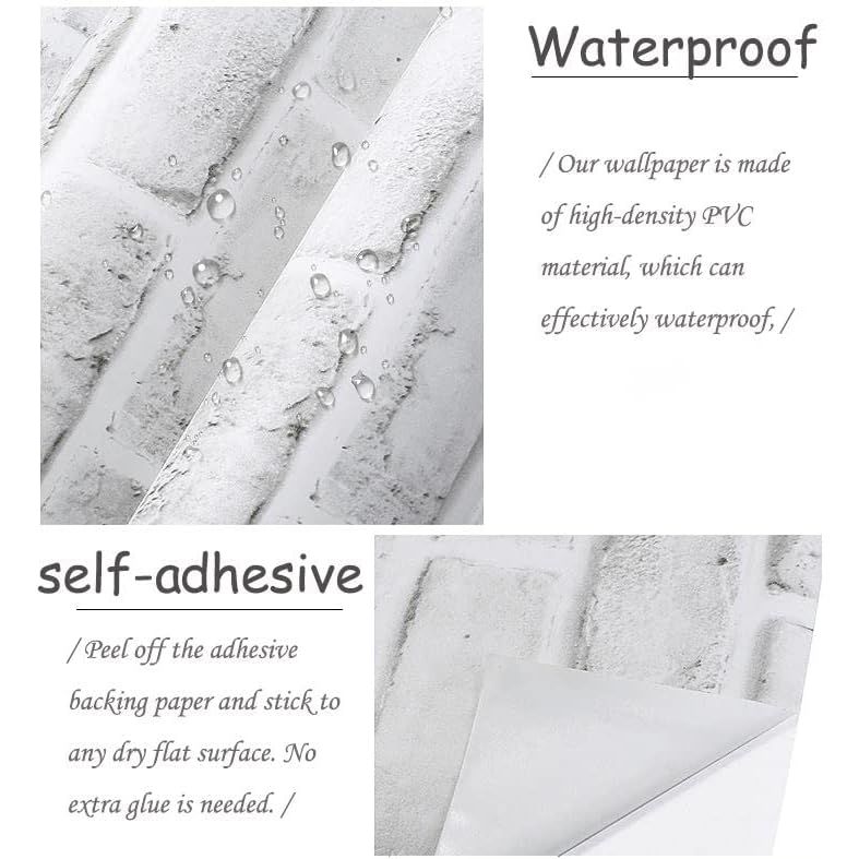 - Cohoo Home Brick Wallpaper Peel and Stick Contact Paper 120inL 18inW Faux 3D Brick Contact Paper for Walls White Gray Grey Self Adhesive Removable Wallpaper Backsplash Bedroom Wall Sticky Waterproof