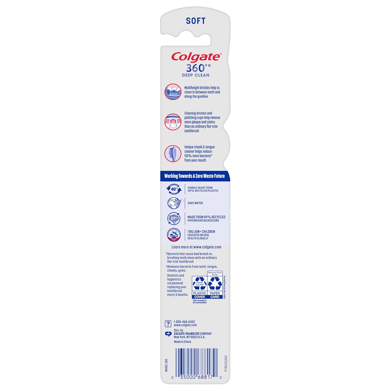 - Colgate 360 Toothbrush with Tongue and Cheek Cleaner, Soft Toothbrush, 1 Pack