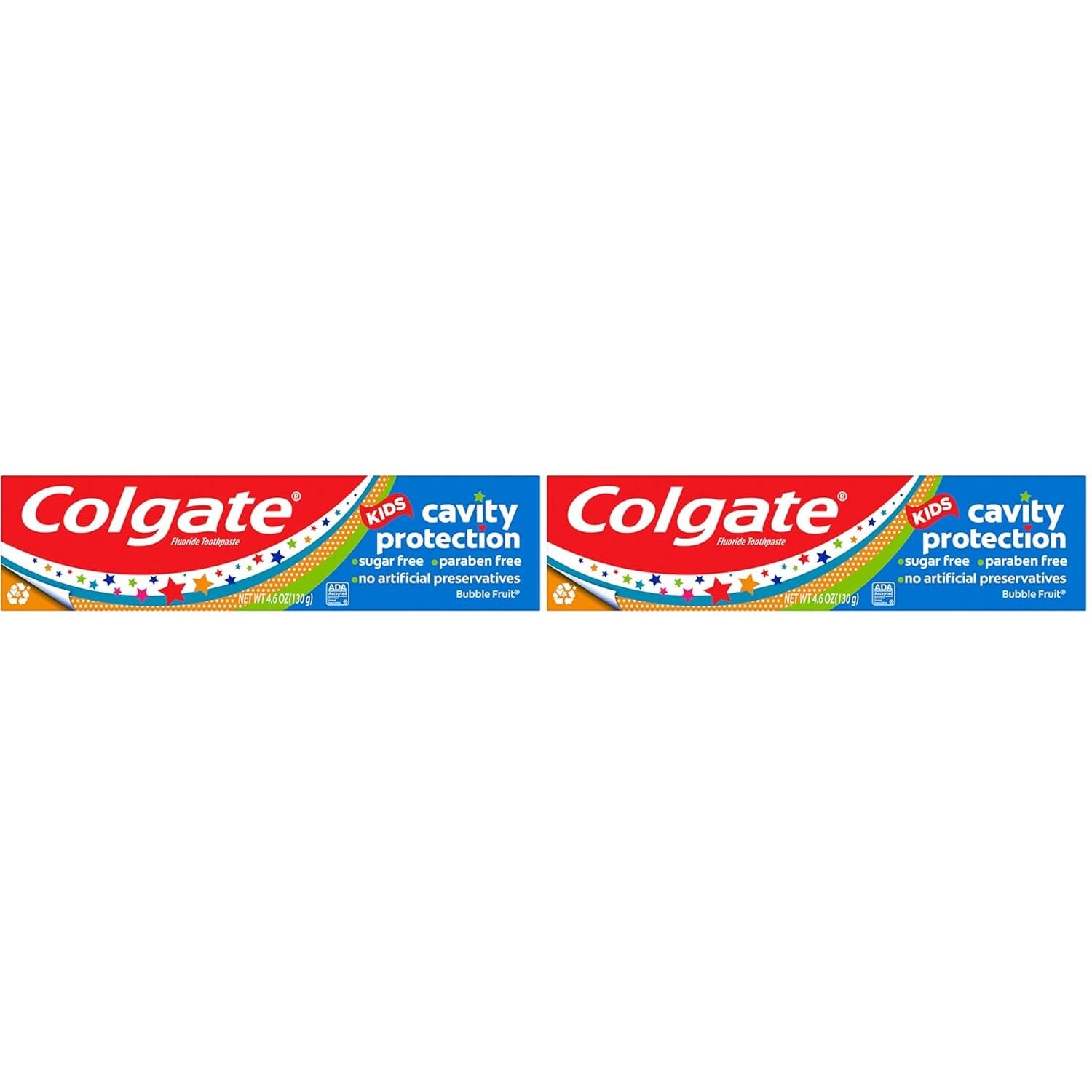- Colgate Kids Cavity Protection Toothpaste with Fluoride, Helps Fight Cavities, Safe for Ages 2+, Mild Bubble Fruit Flavor, Sugar Free, 4.6 Oz Tube