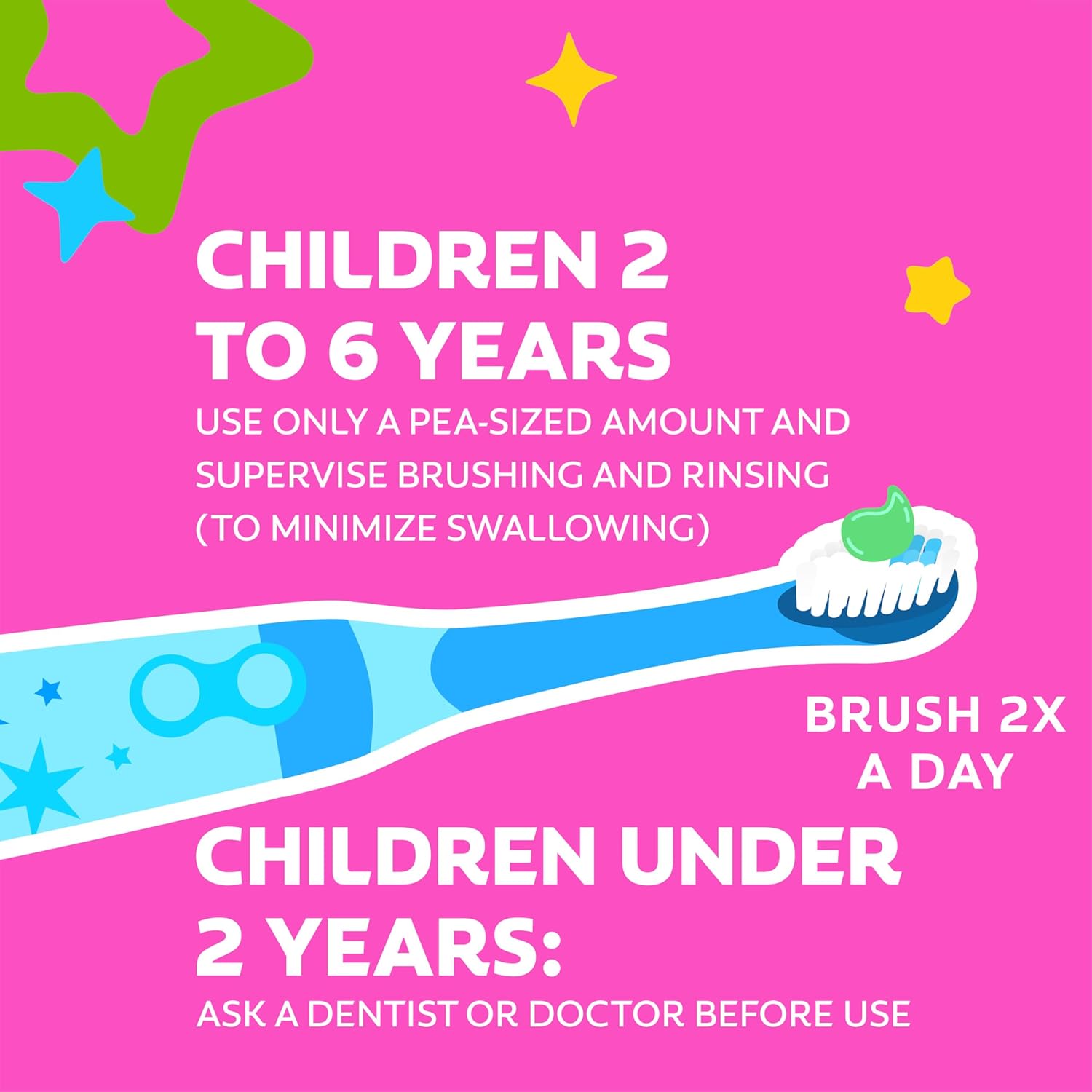 Colgate Kids Toothpaste with Fluoride is a kids cavity protection toothpaste that helps brush away buildup to maintain a healthy smile. Made especially for kids teeth, this cavity protection kid toothpaste is clinically proven to fight cavities with its fluoride formula and is sugar-free and gluten-free. A fun, mild Bubble Fruit flavor in this toothpaste for kids allows for an enjoyable brushing experience. Cavity protection is essential for kids' teeth. Made especially for children ages 2 and up, Colgate Kids Toothpaste with Fluoride, Anticavity & Cavity Protection Toothpaste is a cavity protection toothpaste that’s an ADA (American Dental Association) accepted children's toothpaste. And it doesn’t stop there, this kids toothpaste is enamel safe and clinically proven to fight cavities while making brushing enjoyable for a lifetime of bright smiles.