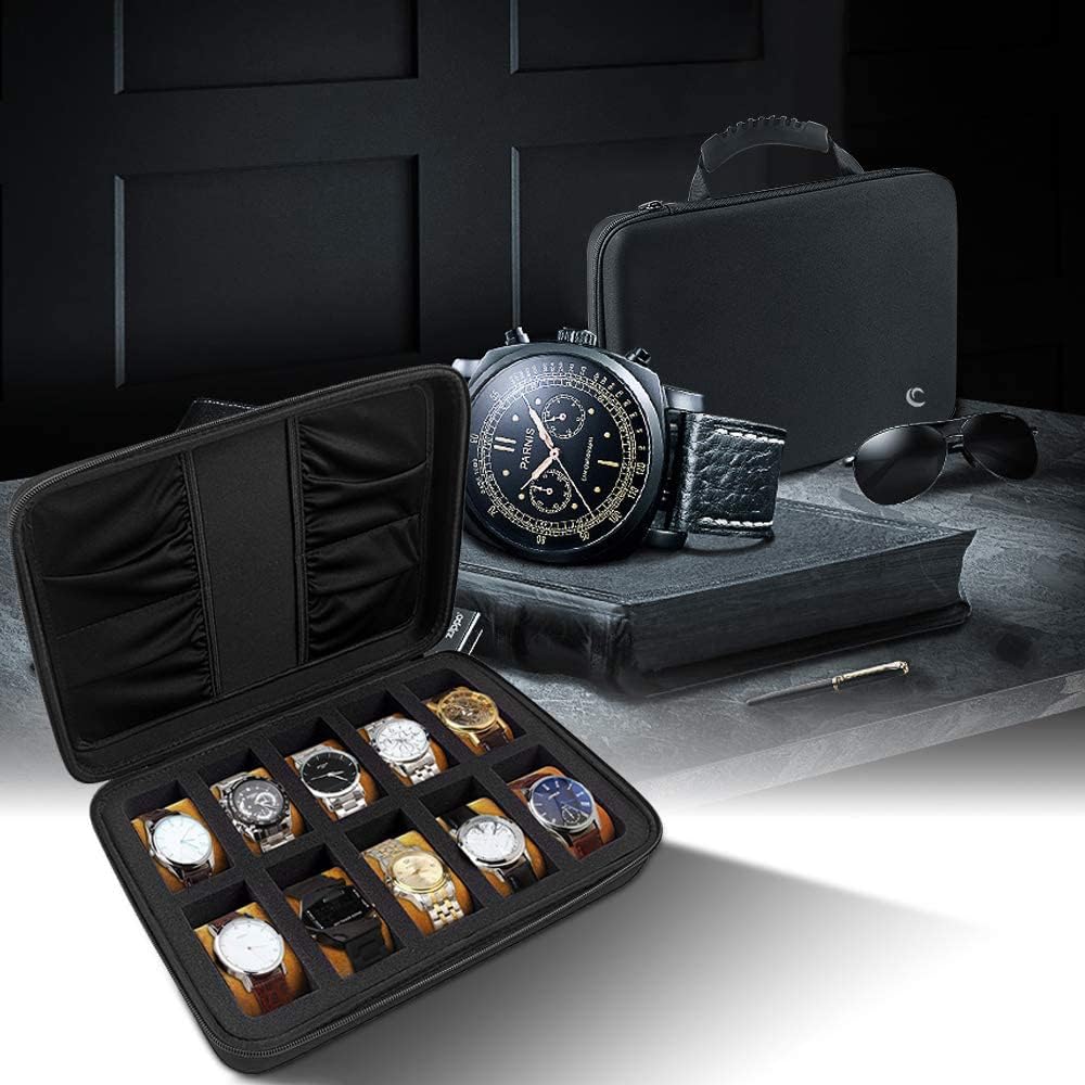 - Comecase 10 Slots Watch Box Organizer/Men Watch Display Storage Case Fits All Watches up to 42mm with Extra 4 Pocket (Black)