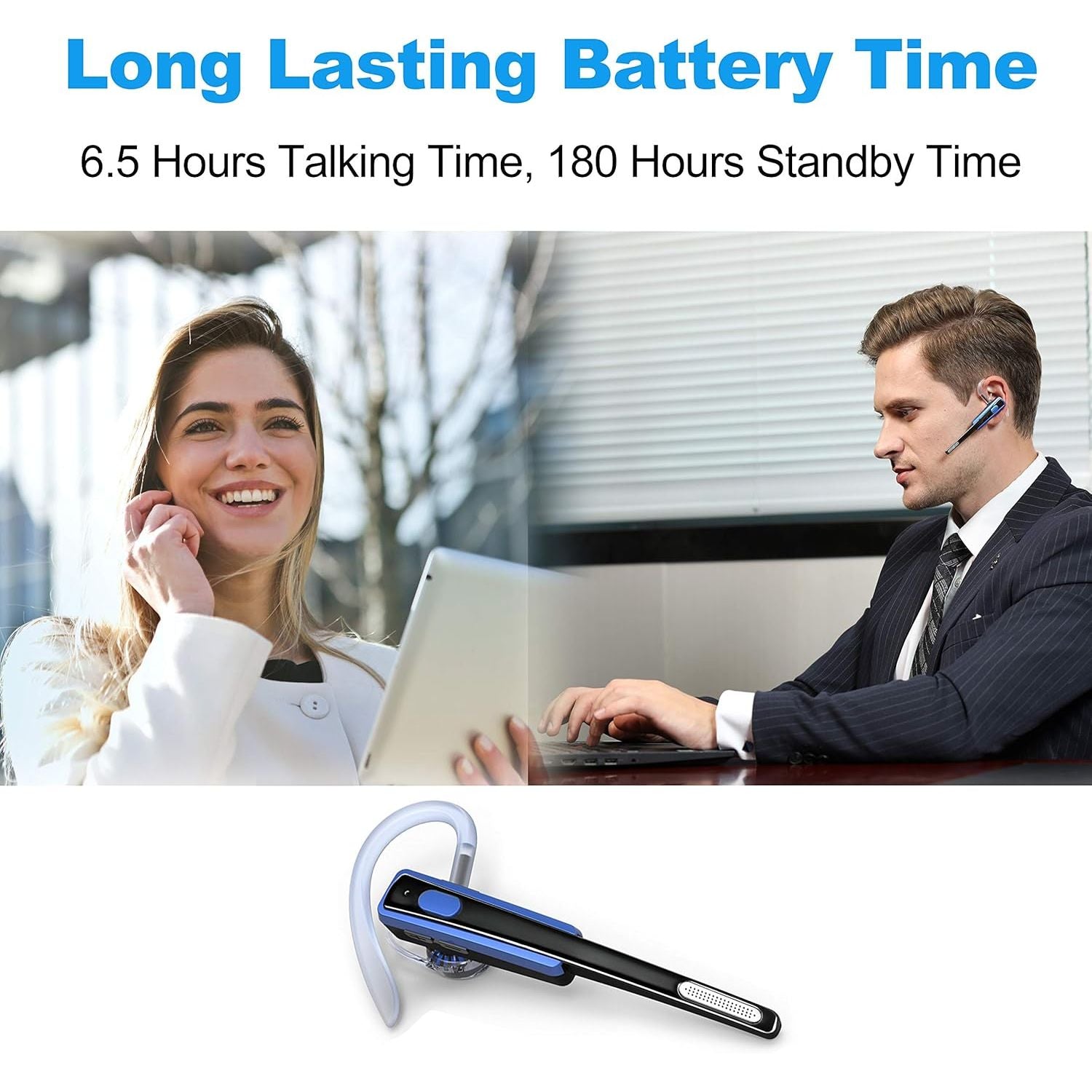 - COMEXION Bluetooth Headset, Wireless Business Earpiece V4.1 Lightweight Noisy Suppression Bluetooth Earphone with Microphone for Phone/Laptop/Car(Blue+Case)