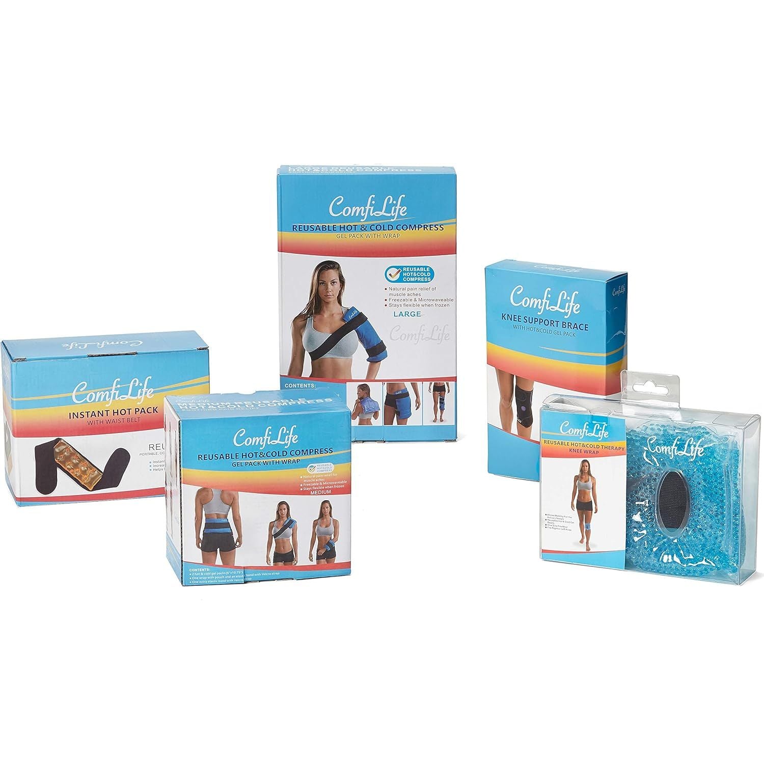 - ComfiLife Knee Ice Pack with Wrap Reusable Hot & Cold Therapy Gel Pack Adjustable Compression Support for Injuries, Pain, Surgery, Arthritis, Meniscus and More