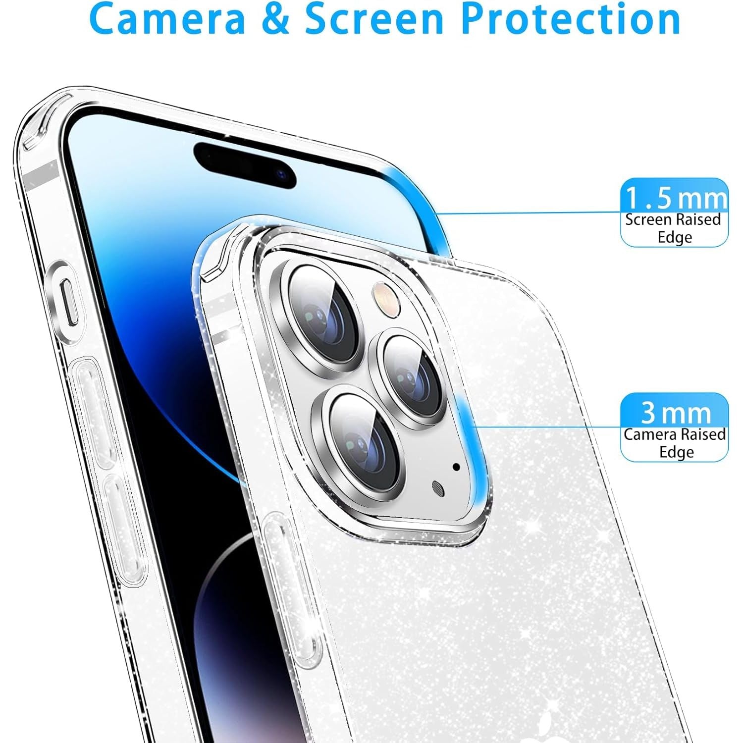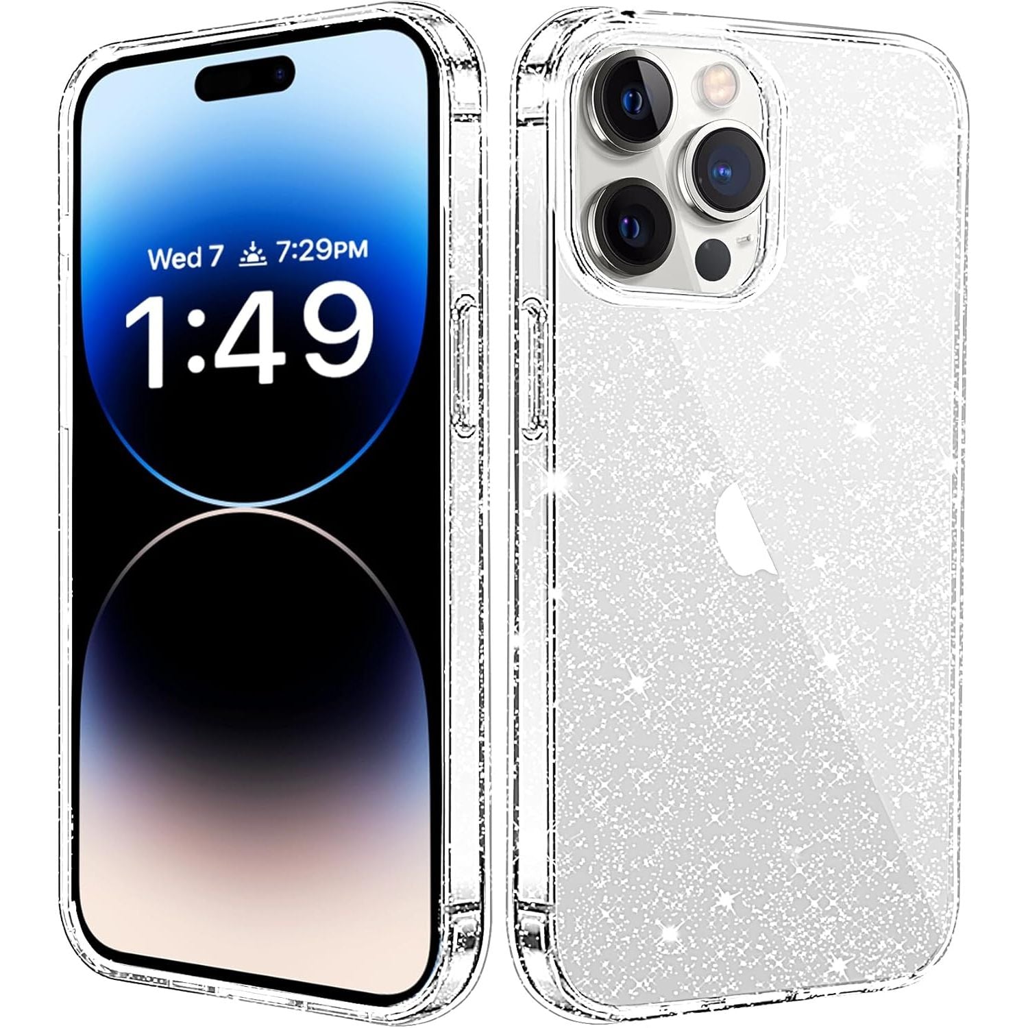- Compatible with iPhone 14 Pro Case, Bling Sparkle Soft TPU Anti-Scratch Shockproof Protective Phone Bumper, Women Girls Cute Slim Sparkly Phone Case for iPhone 14 Pro, Clear Glitter