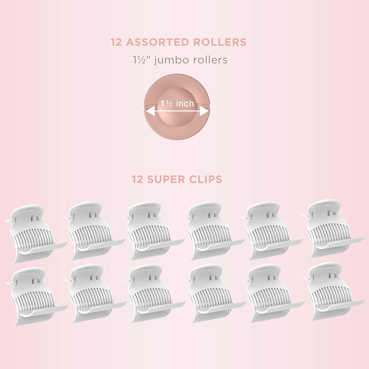 - Full Set: Includes 12 ceramic flocked rollers in one size for custom curls and waves; Twelve 1 1/2 inch jumbo rollers; This special set includes 12 super clips to hold your hair securely and keep the rollers in place.