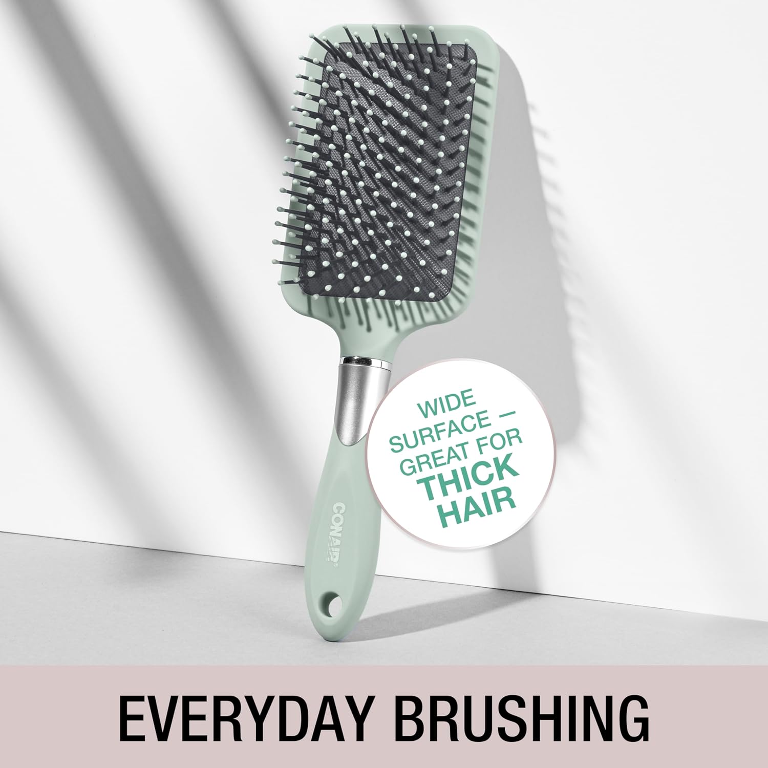 Conair Velvet Touch Paddle Cushion hair brush - Detangling hairbrush - curly or straight styles - men or women - detangler - features soft touch handle - Sage Green