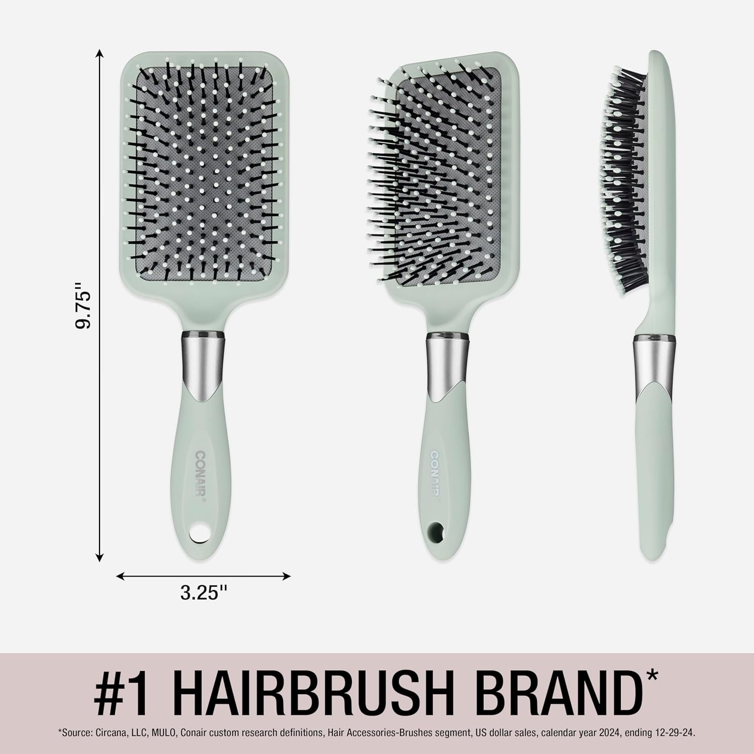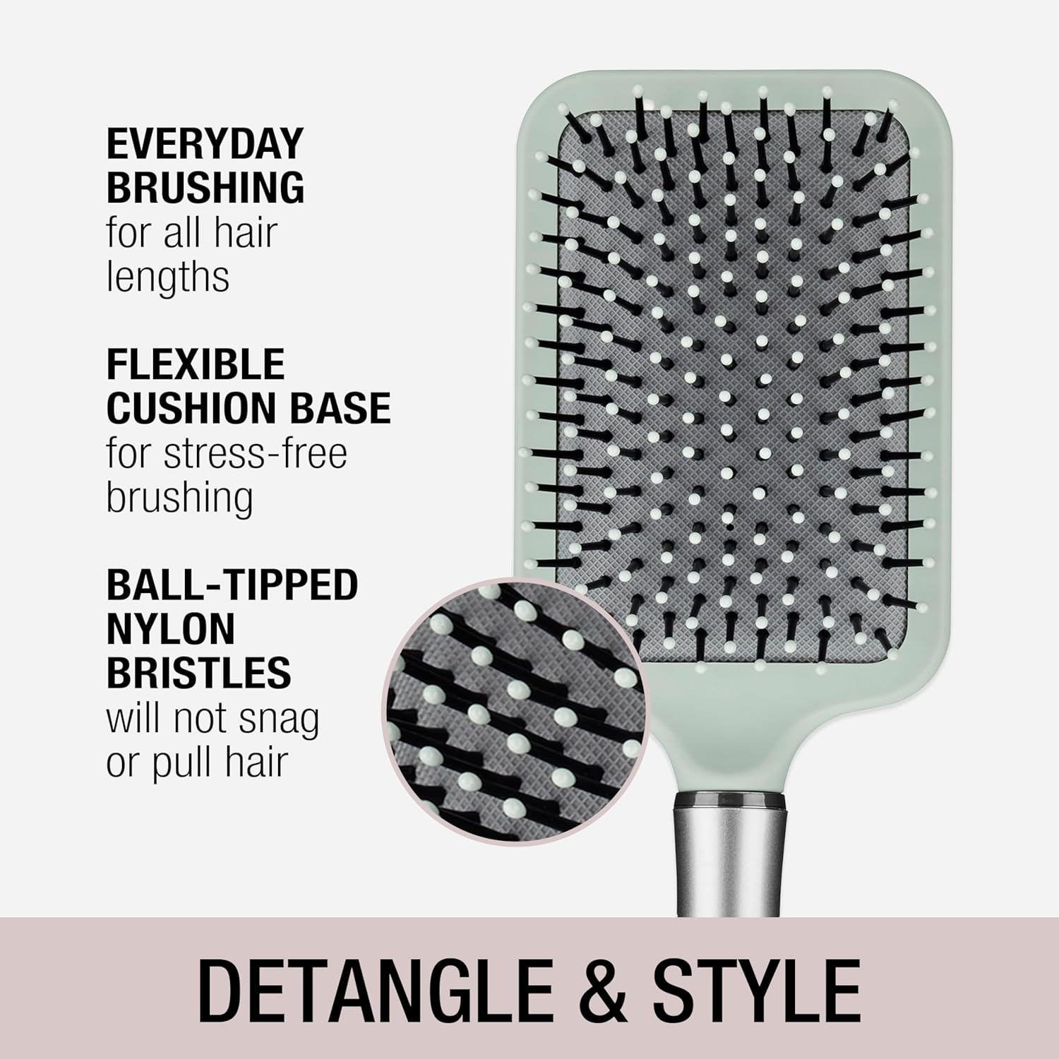 - Conair Velvet Touch Paddle Cushion hair brush - Detangling hairbrush - curly or straight styles - men or women - detangler - features soft touch handle - Sage Green