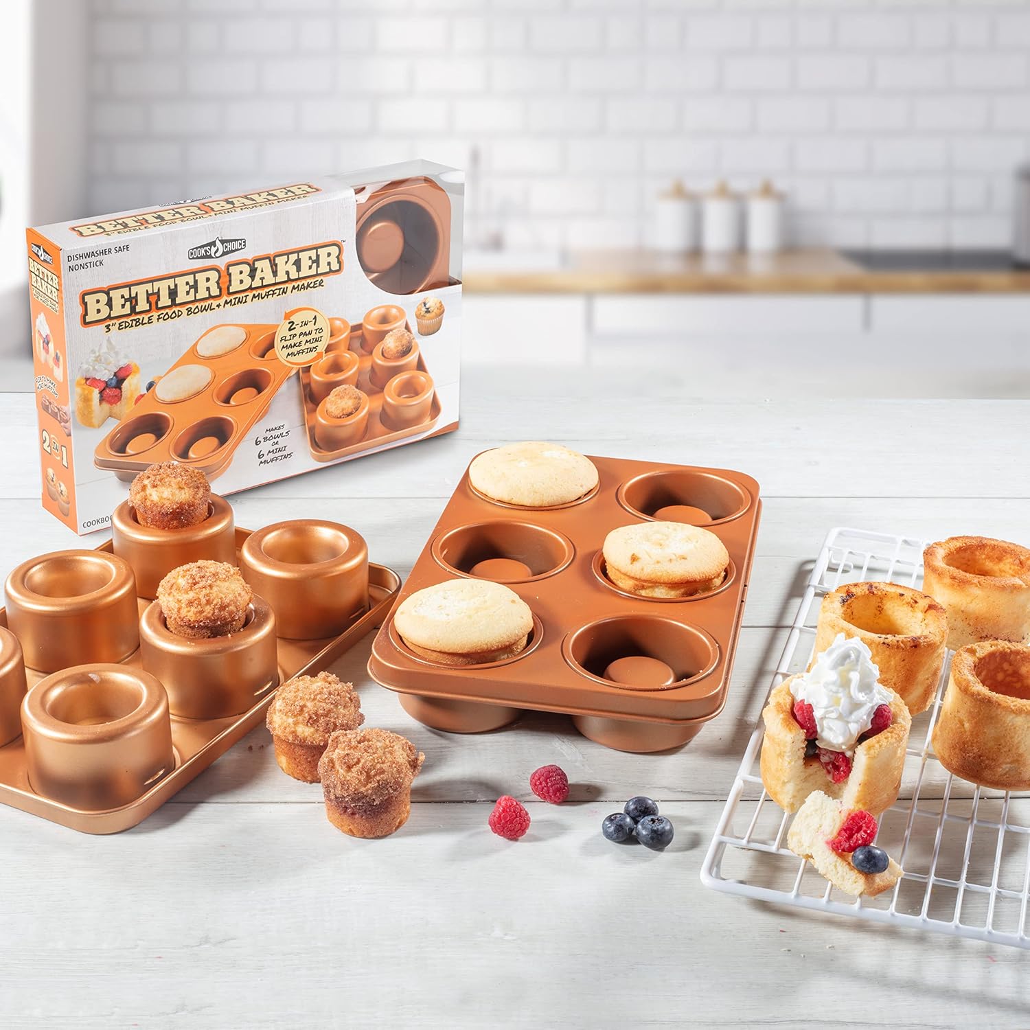 - BETTER BAKER - The original Better Baker edible food bowl and mini muffin maker.