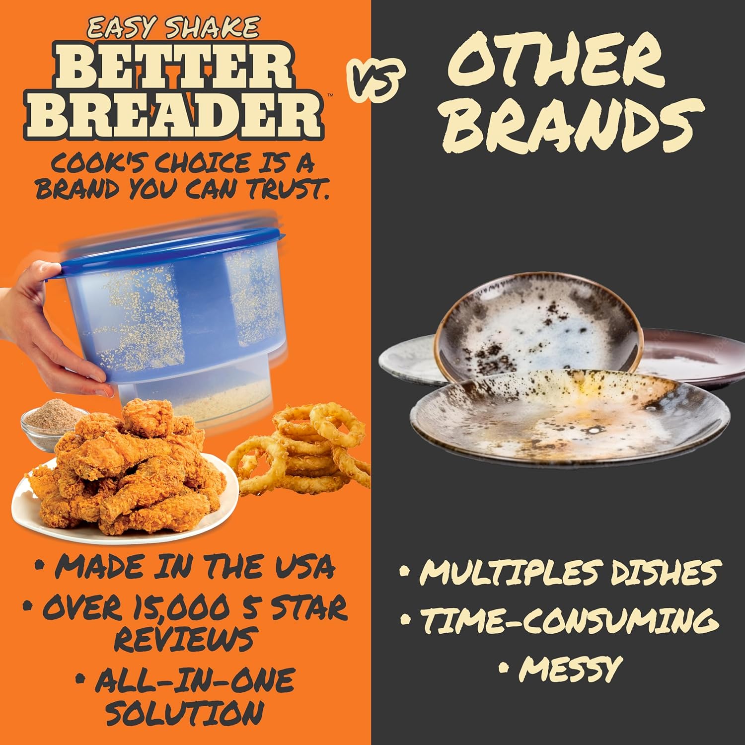 - COOK'S CHOICE The Original Better Breader Bowl All-in-One Mess-Free Batter Breading Station - Pour in Seasonings, Add Meat or Veggies & Shake for Perfect Coating - Great for Parties- Made in the USA