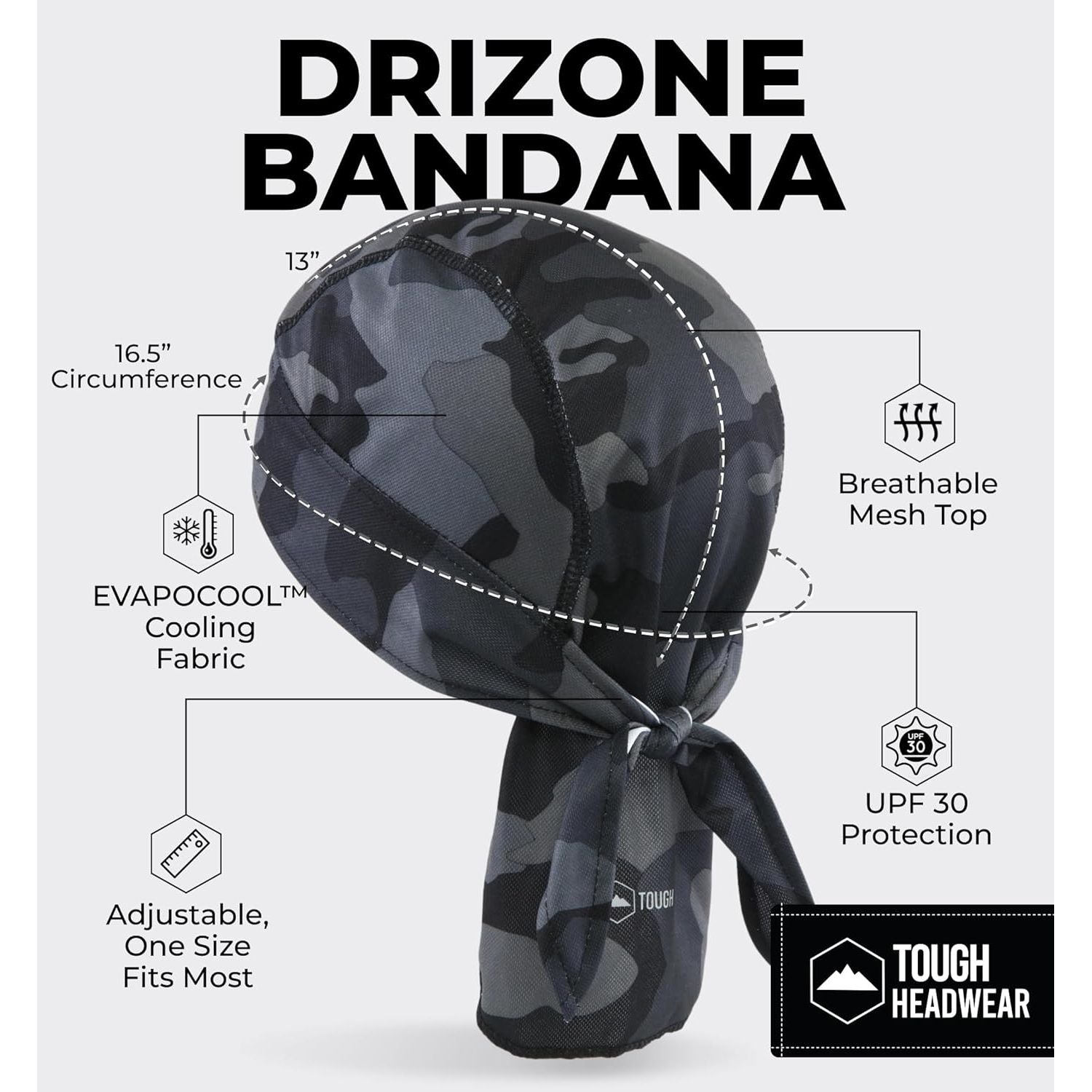 - 99 Problems But Sweat Ain’t One: Stay dry with our DriZone Bandana! This 100% polyester cooling head wrap for men wicks sweat and blocks UV rays—perfect motorcycle head wrap or biker bandana for men.