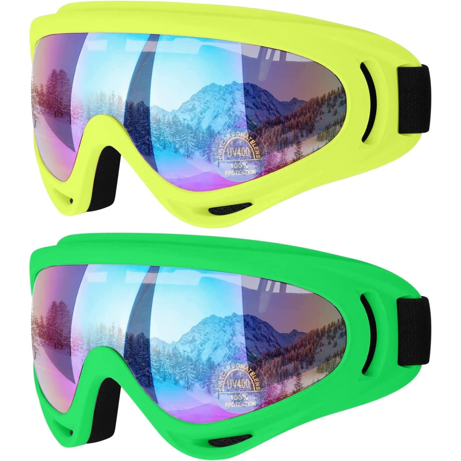 COOLOO Ski Goggles, 2 Pack Snow Goggles Snowboard Goggles for Men Women Kids - UV Protection Foam Anti-Scratch Dustproof