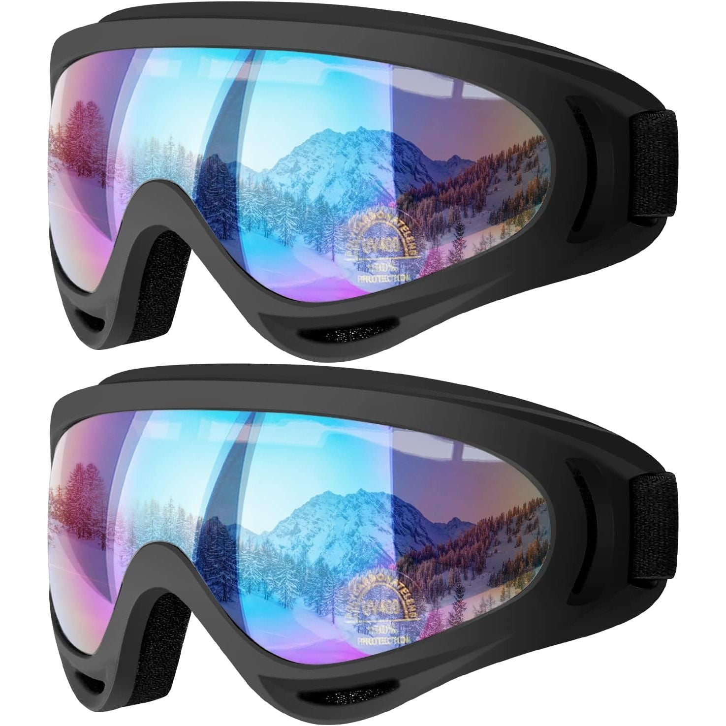 - COOLOO Ski Goggles, 2 Pack Snow Goggles Snowboard Goggles for Men Women Kids - UV Protection Foam Anti-Scratch Dustproof