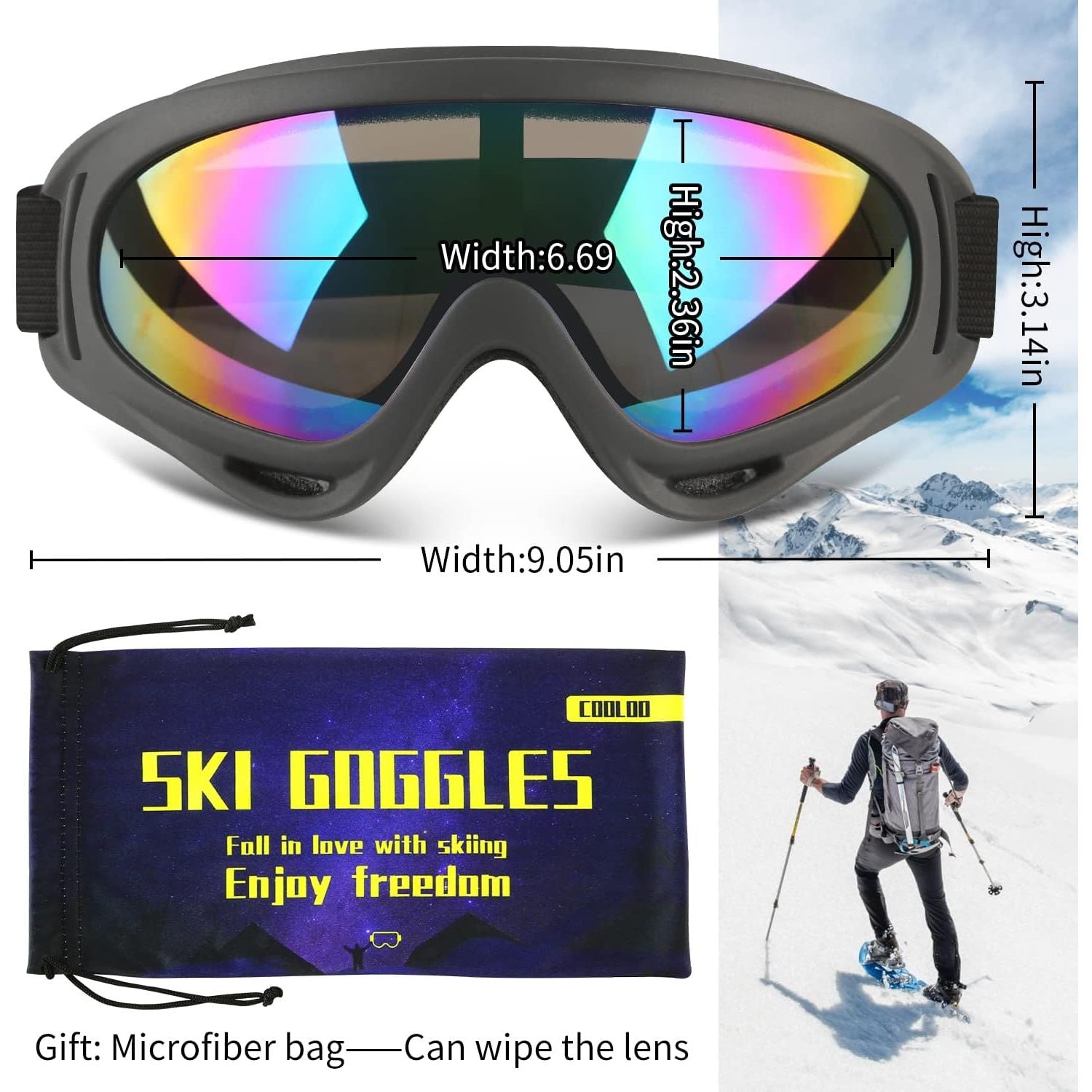 - Customer-oriented Service: After purchasing the product, you will get, ski goggles x 2, handbag x 1, easy to carry. COOLOO provides each customer who purchases our products warranty and quick response and friendly customer service.