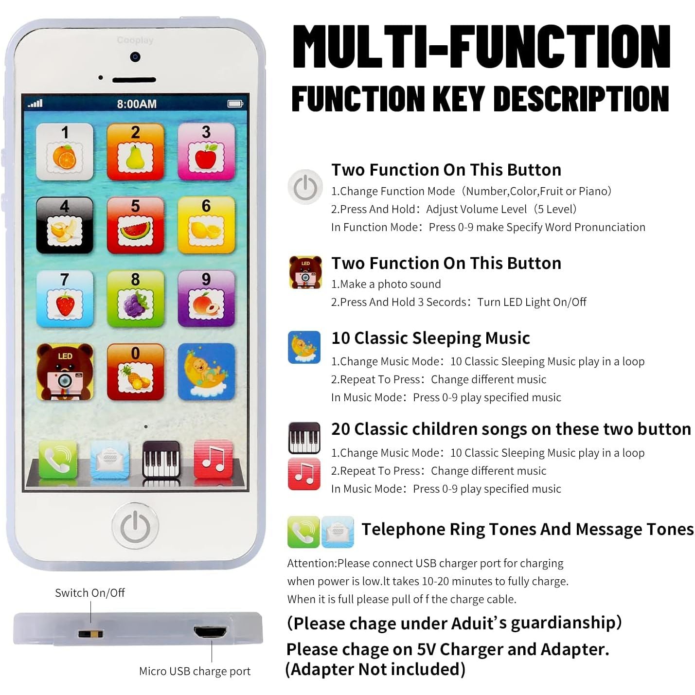 - Cooplay Learning Smart Phone Toy Music Lullaby Song Touch Screen Type-C Recharable Cell Phone Mobile Yphone for Toddler Baby