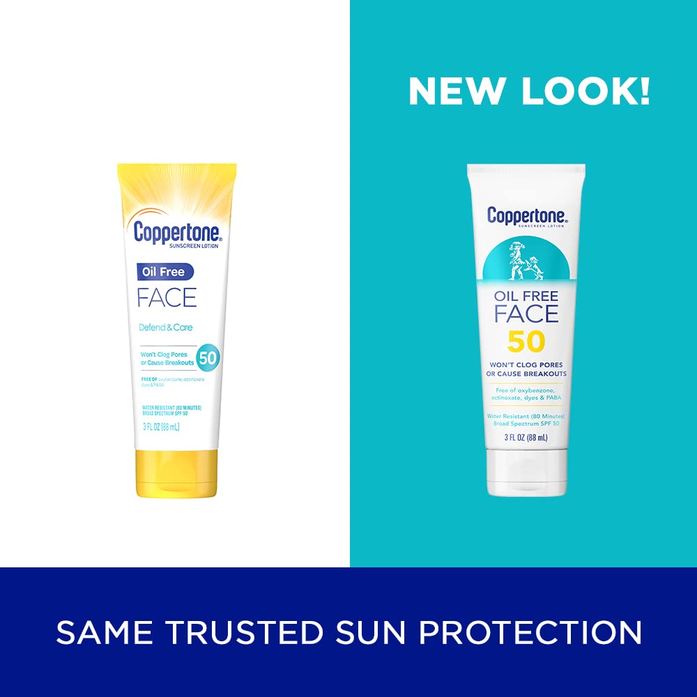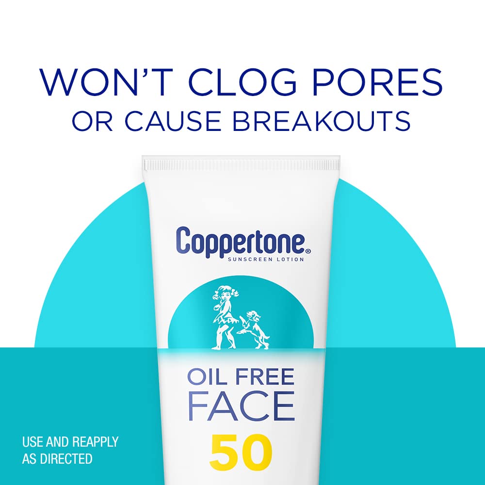 - Coppertone Oil Free Sunscreen for Face SPF 50, Face Sunscreen Lotion, Travel Size, 3 Fl Oz Tube