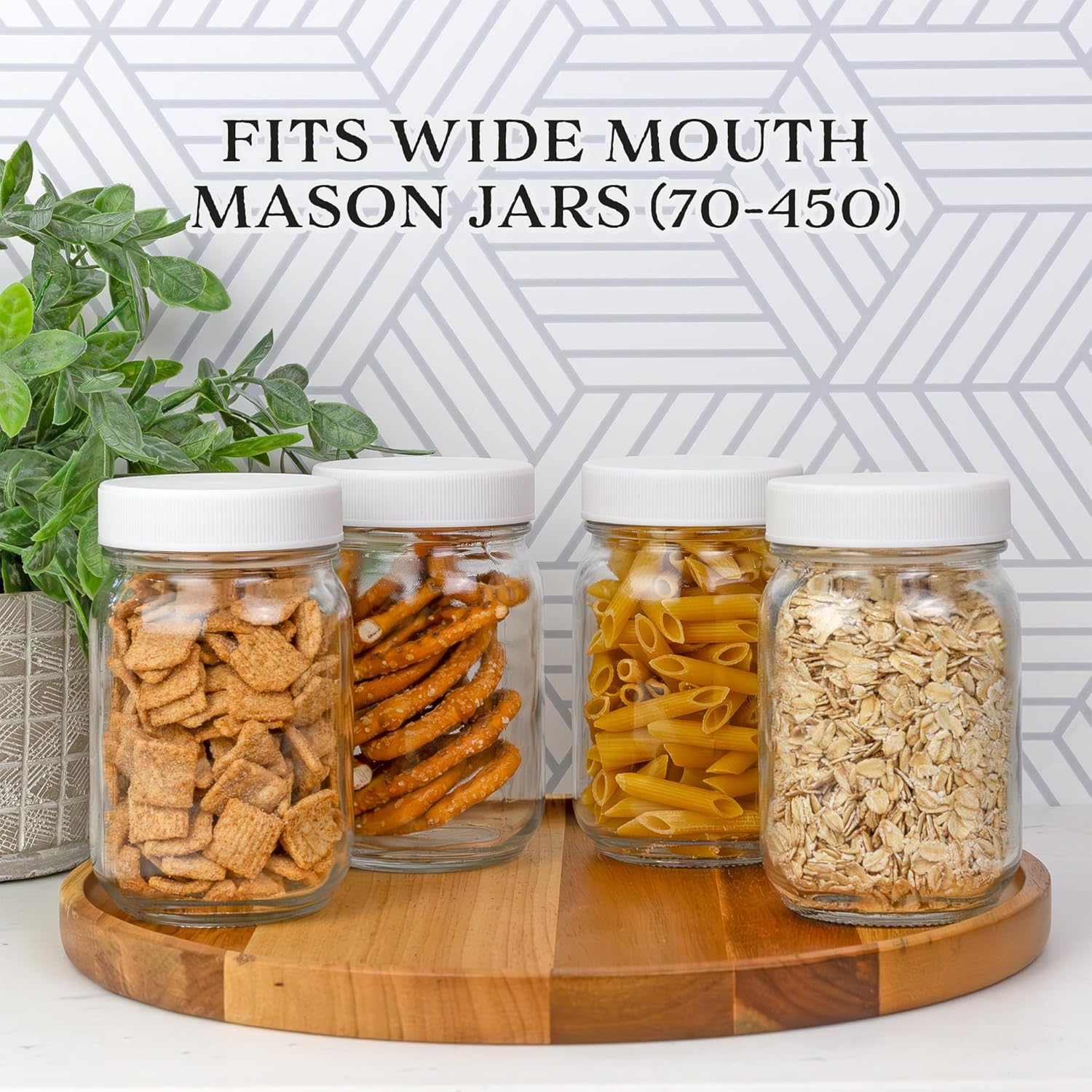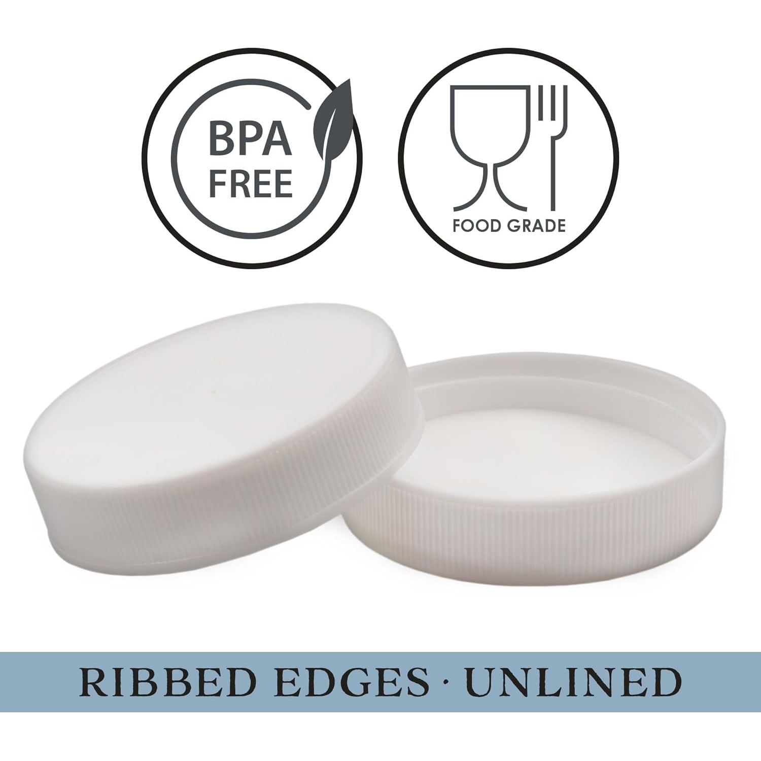 - Cornucopia Brands Regular Mouth Plastic Mason Jar Lids, Unlined (24-Pack); Standard Size 70-450 White Plastic Caps for Mason Jars