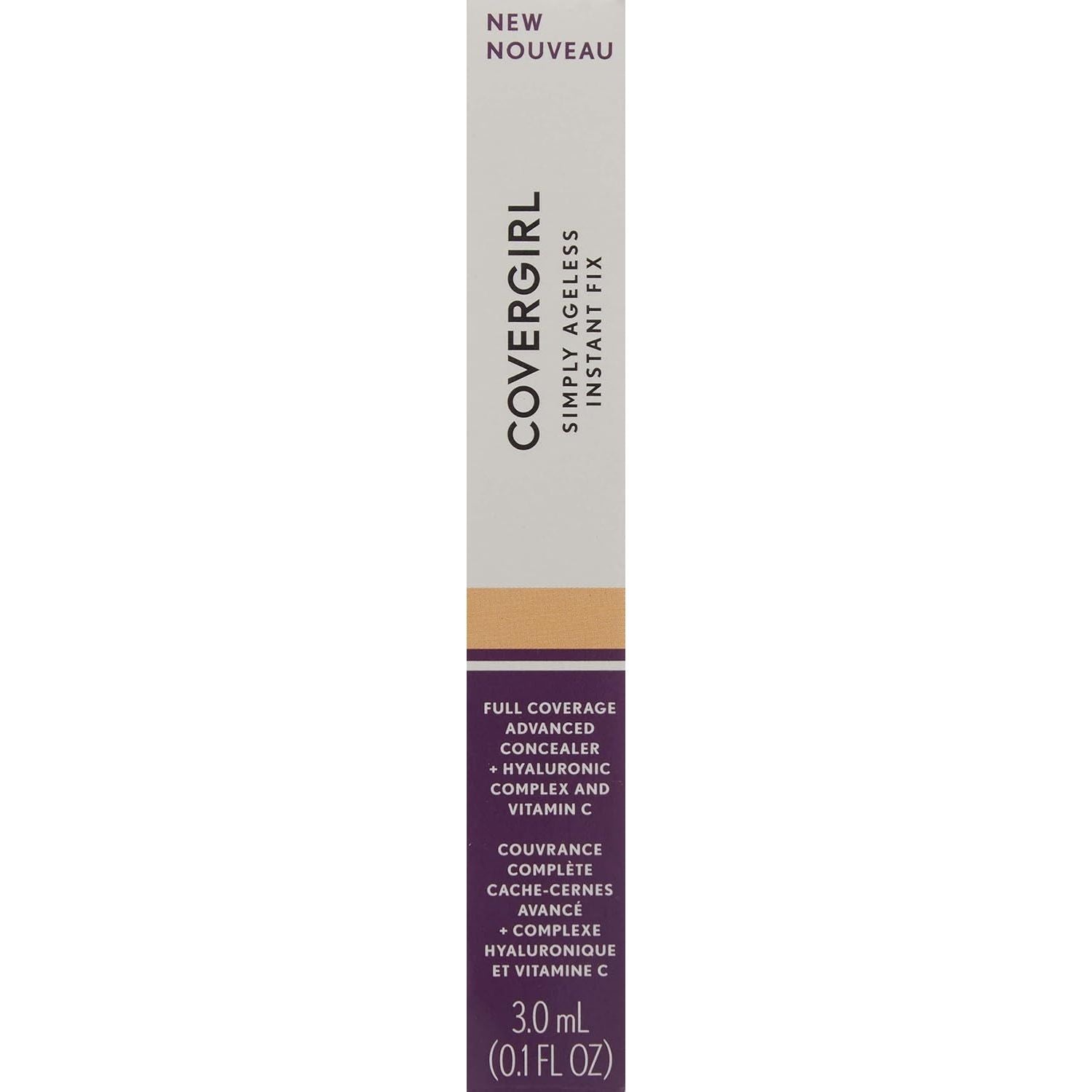 Put your freshest face forward with Covergirl Simply Ageless Instant Fix Advanced Concealer. This full coverage concealer instantly improves the look of skin by hiding dark circles and smoothing fine lines. Skin looks healthier and more hydrated thanks to the formula with hyaluronic complex and vitamin C, and the soft tip applicator helps blend for flawless coverage. Pro-tip: Pair with Covergirl Simply Ageless 3-in-1 Foundation to create a timeless makeup look with nourishing skin care benefits.