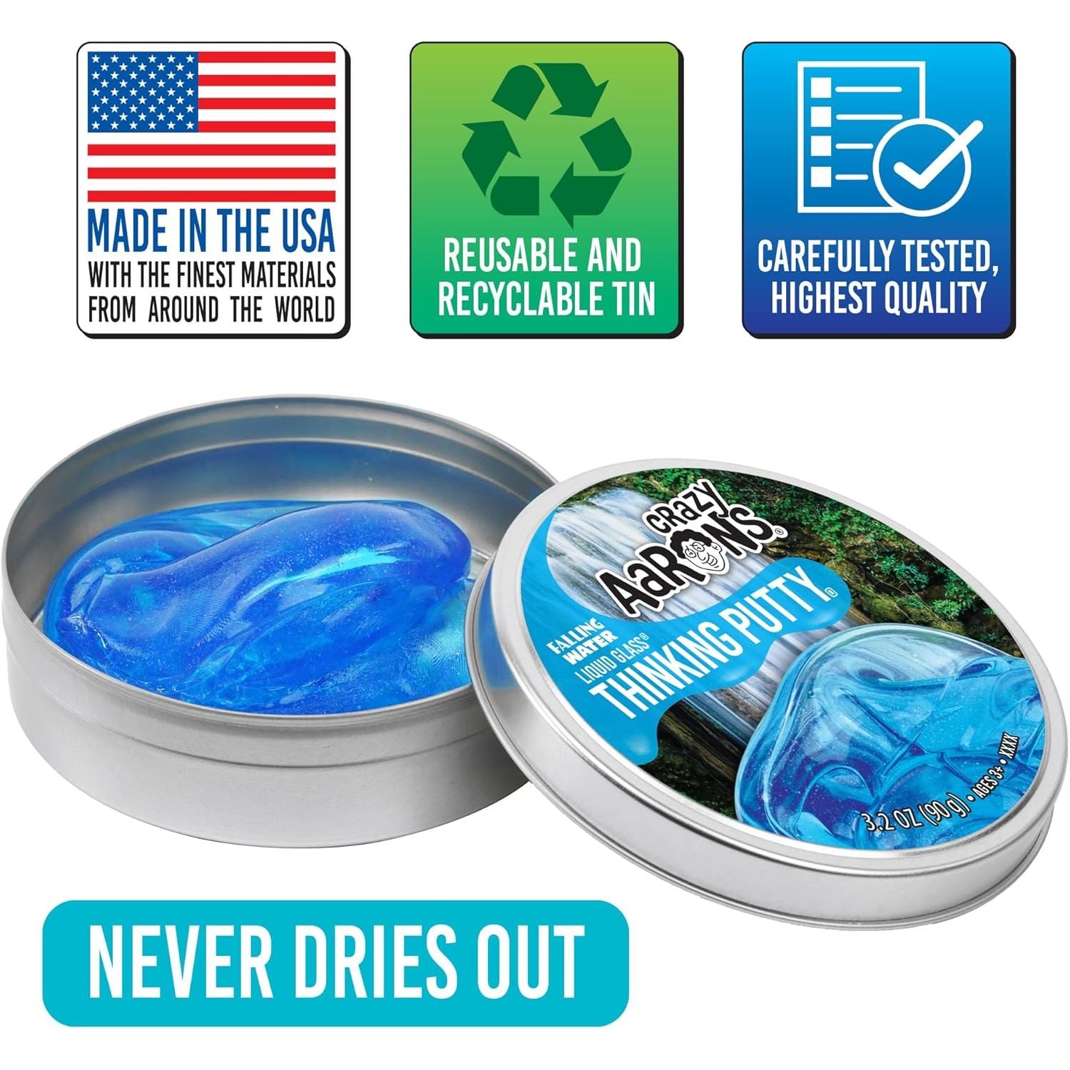 - Crazy Aaron's Transparent Thinking Putty - 4" Falling Water Liquid Glass See Through Putty Tin - 90 Grams, Never Dries Out - Made in USA