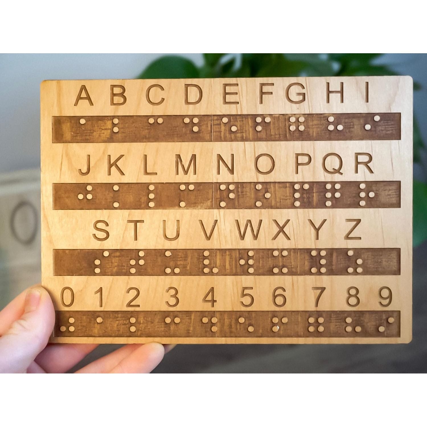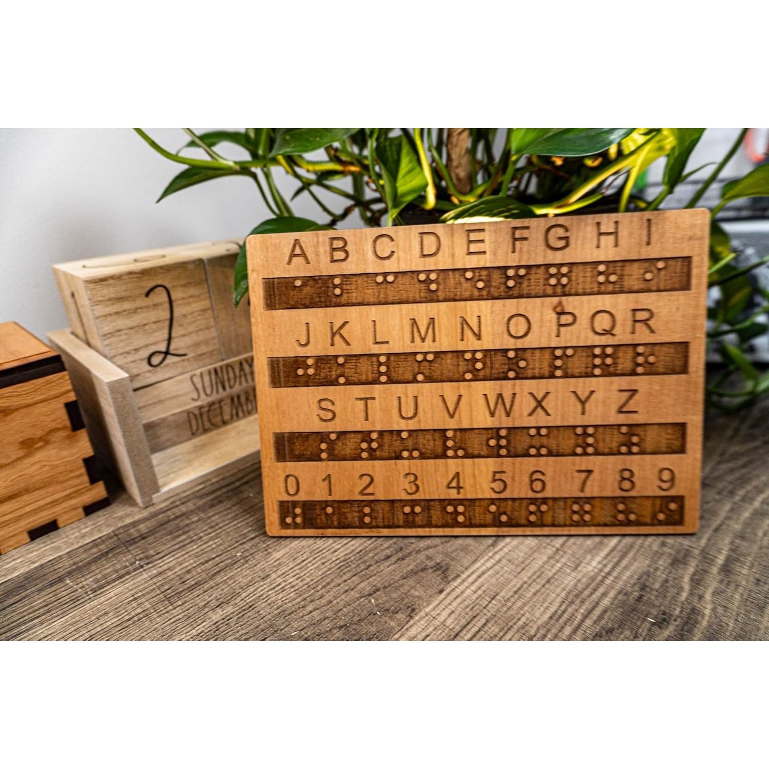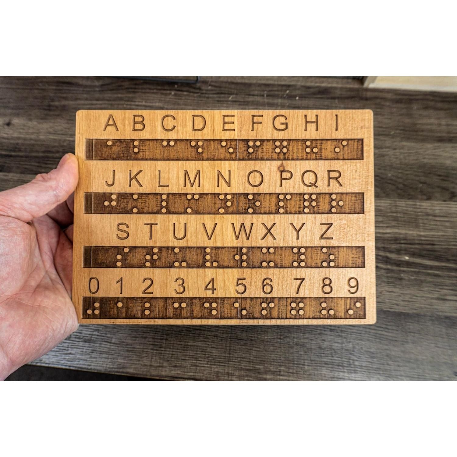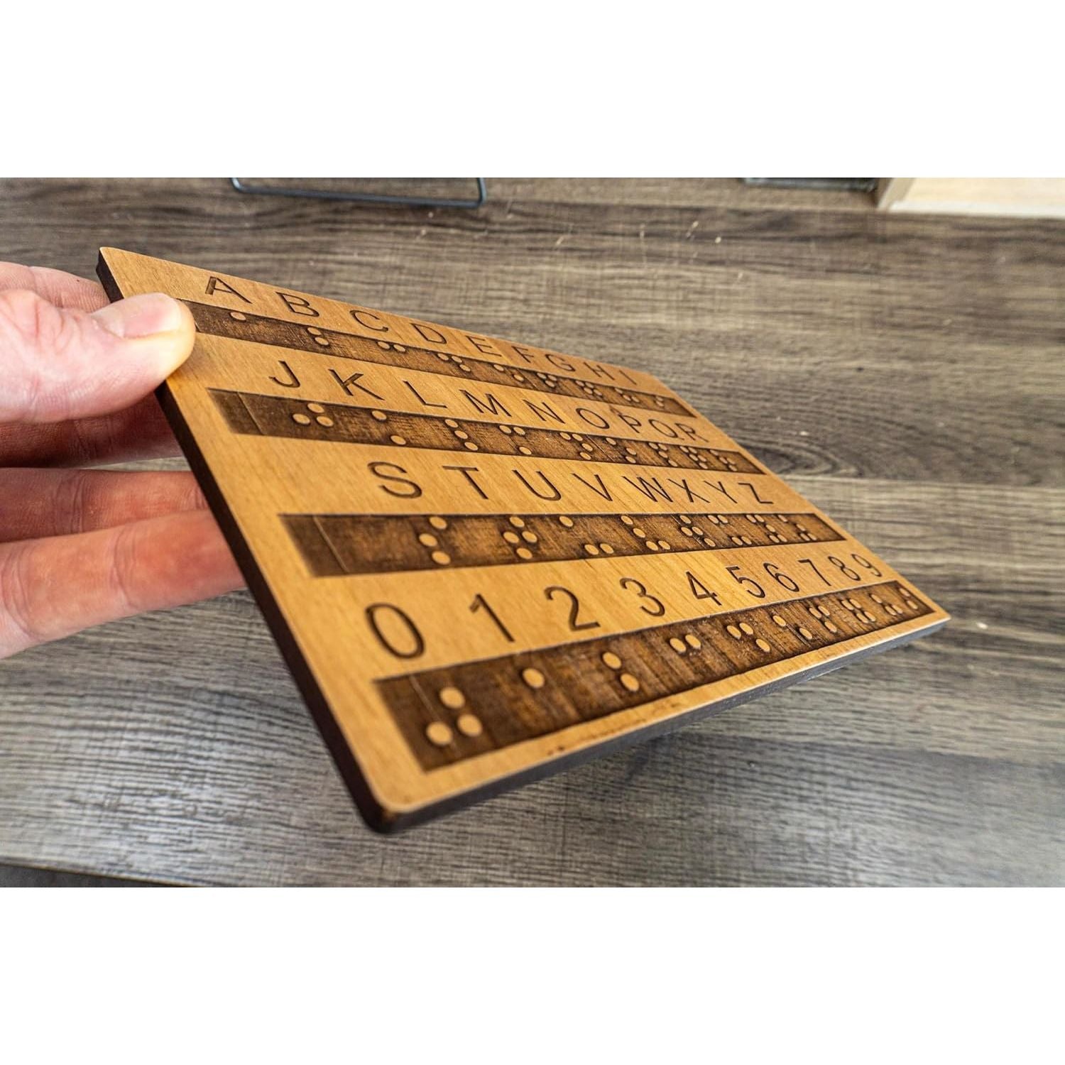 - Creative Escape Rooms Made in USA - Raised Dots Braille Alphabet and Number Wood Board - Learn Braille - Tactile Montessori - Teaching Aid