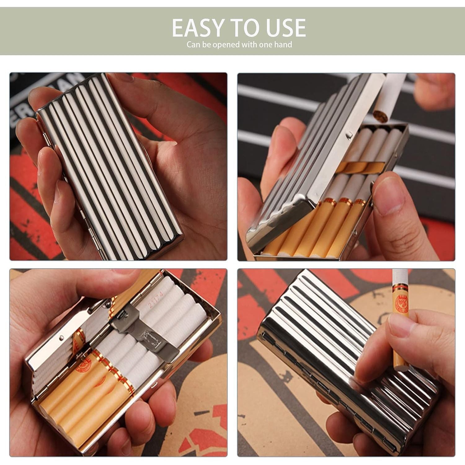 - Pack maximum hold 10 regular sized cigarettes.