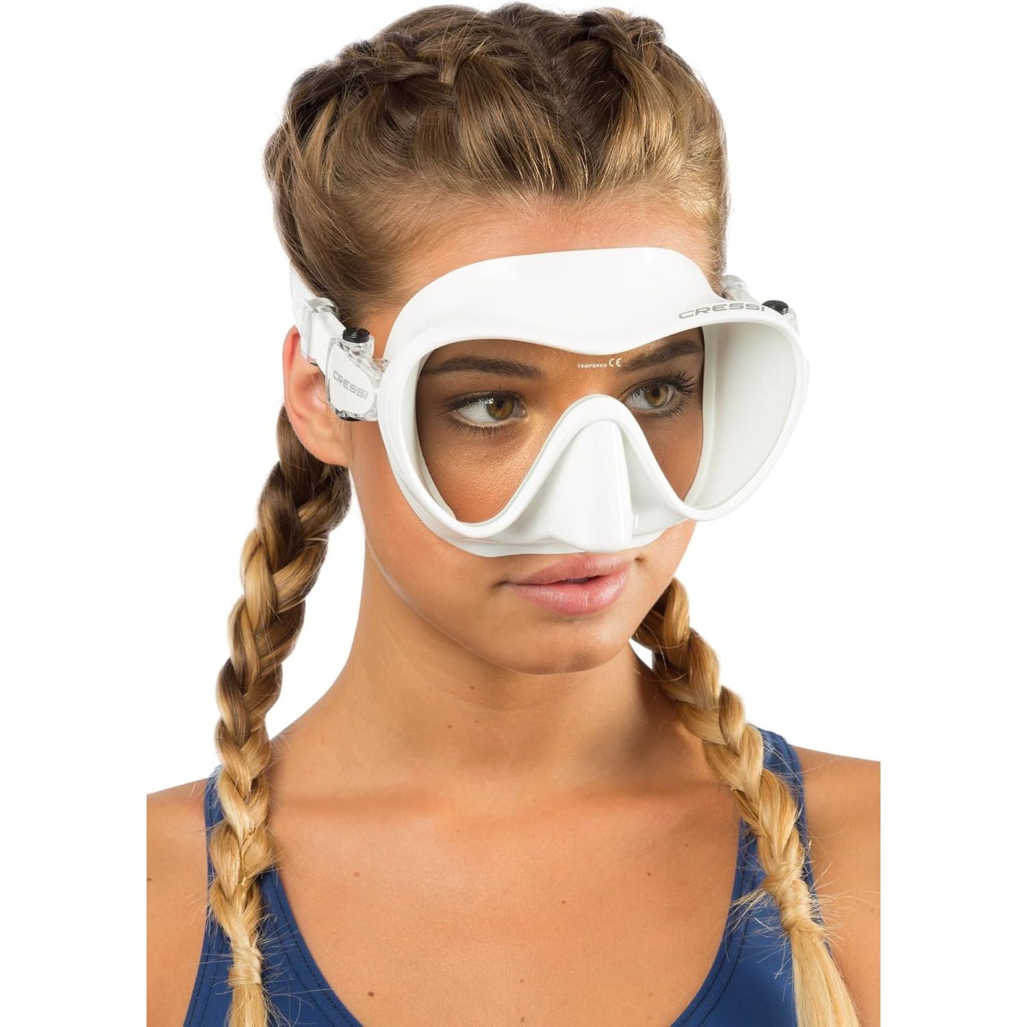 - Cressi’s frameless design bonds a high-grade silicone skirt directly to a single lens for the ultimate in simplicity.