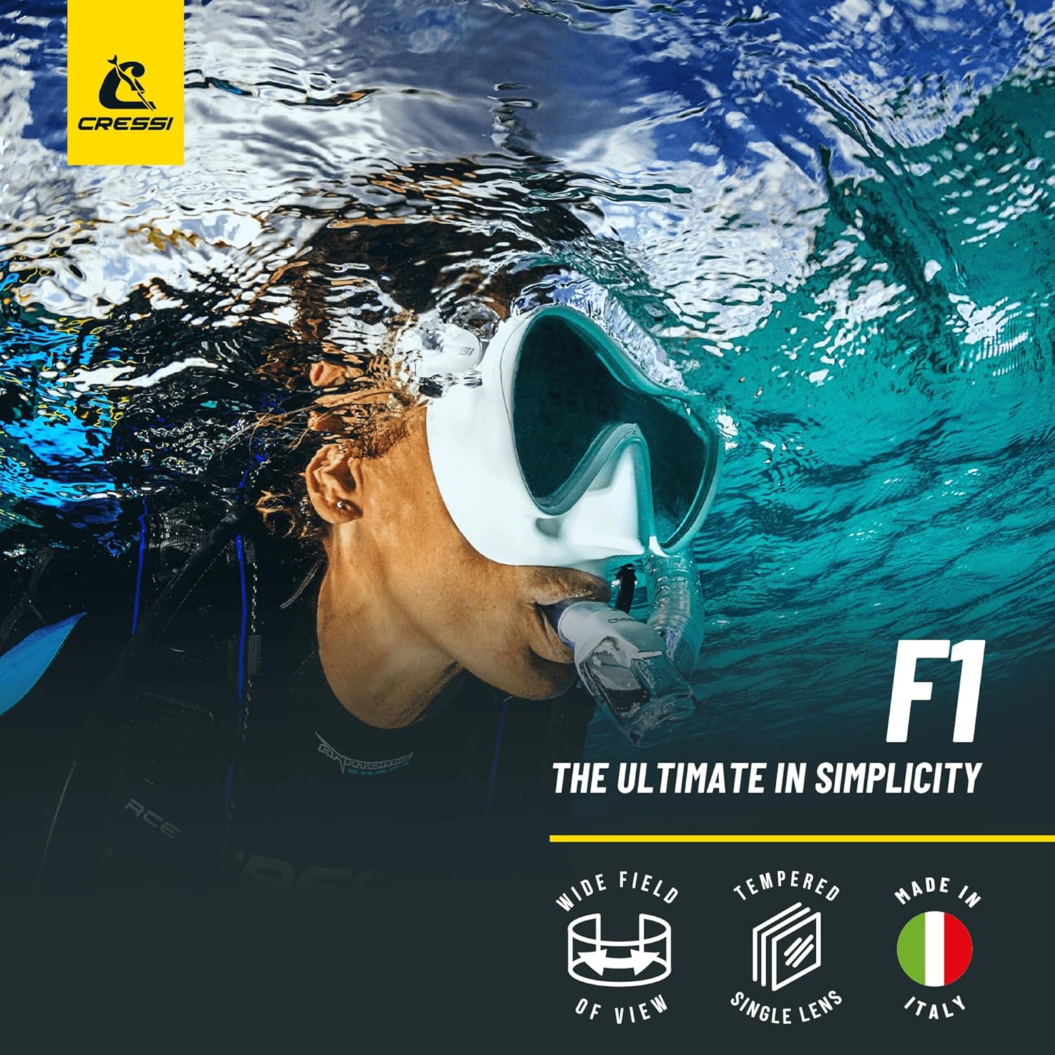 - Cressi F1, Scuba Diving Snorkeling Frameless Mask - Perfect Seal Silicone Skirt - Designed in Italy by Cressi