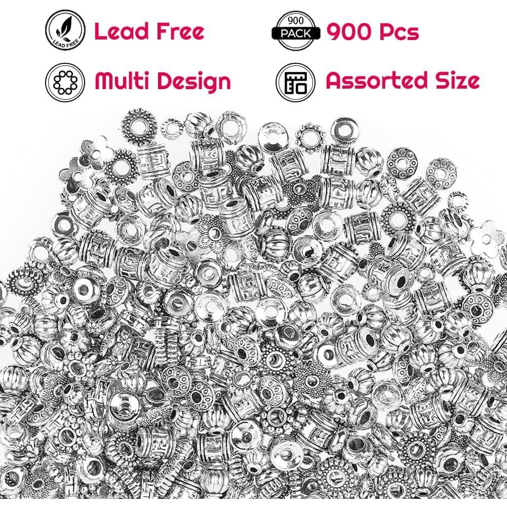 - Cridoz Metal Spacer Beads for Making Bracelet, Necklace, Jewelry Making and Findings Accessories, 900Pcs, Silver
