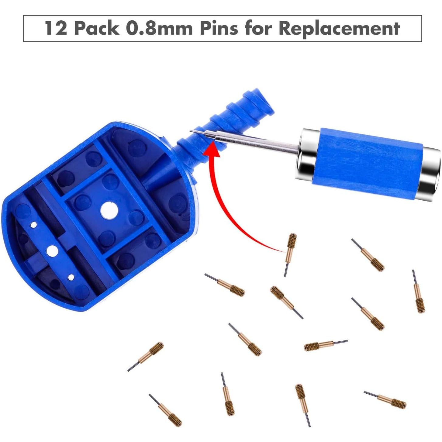 - What You Will Get: Cridoz watch link remover kit comes with a watch link removal tool with 12 pieces spare pins and 3 pieces different sizes pin punches, great for watch band removal, watch sizing and watch bracelet replacement