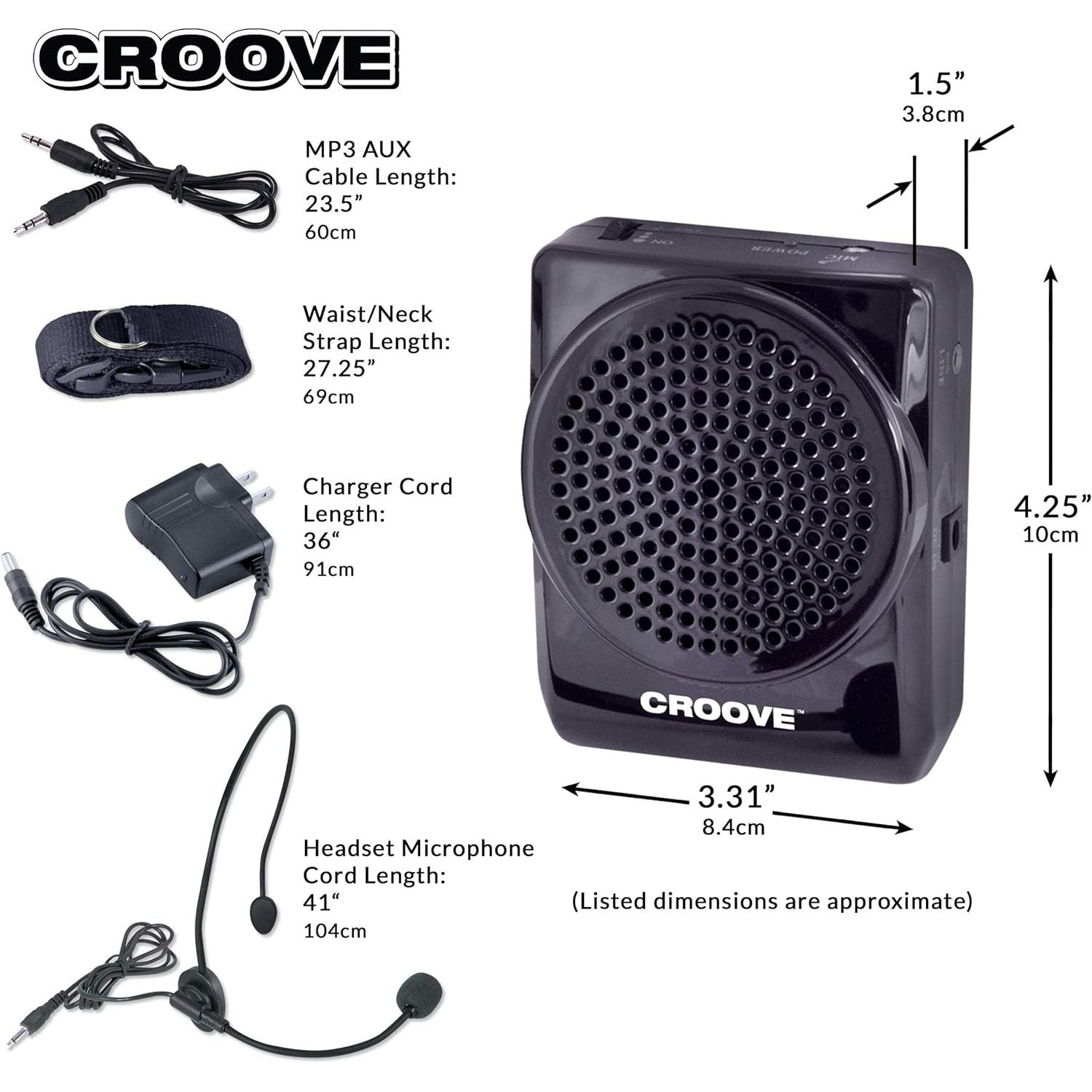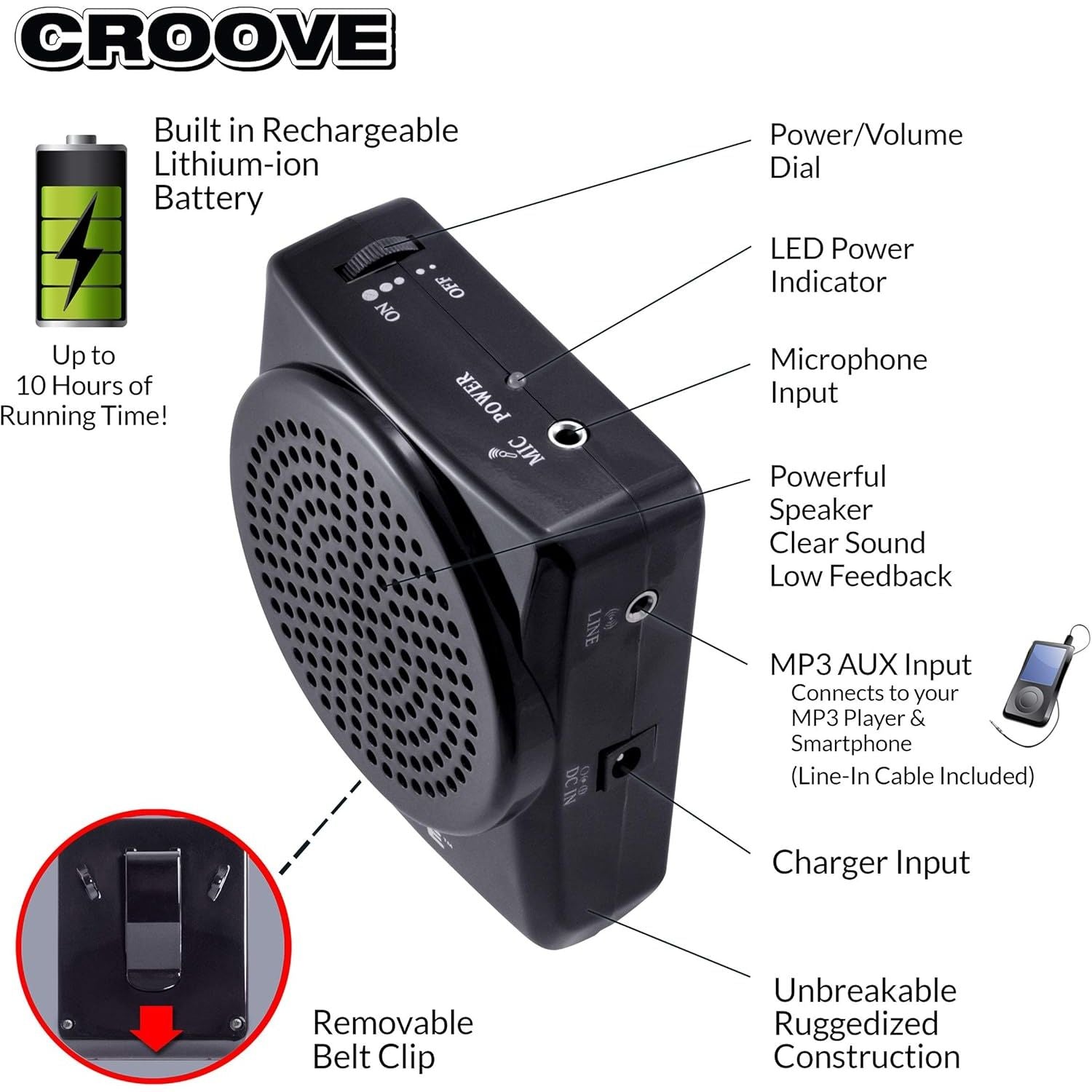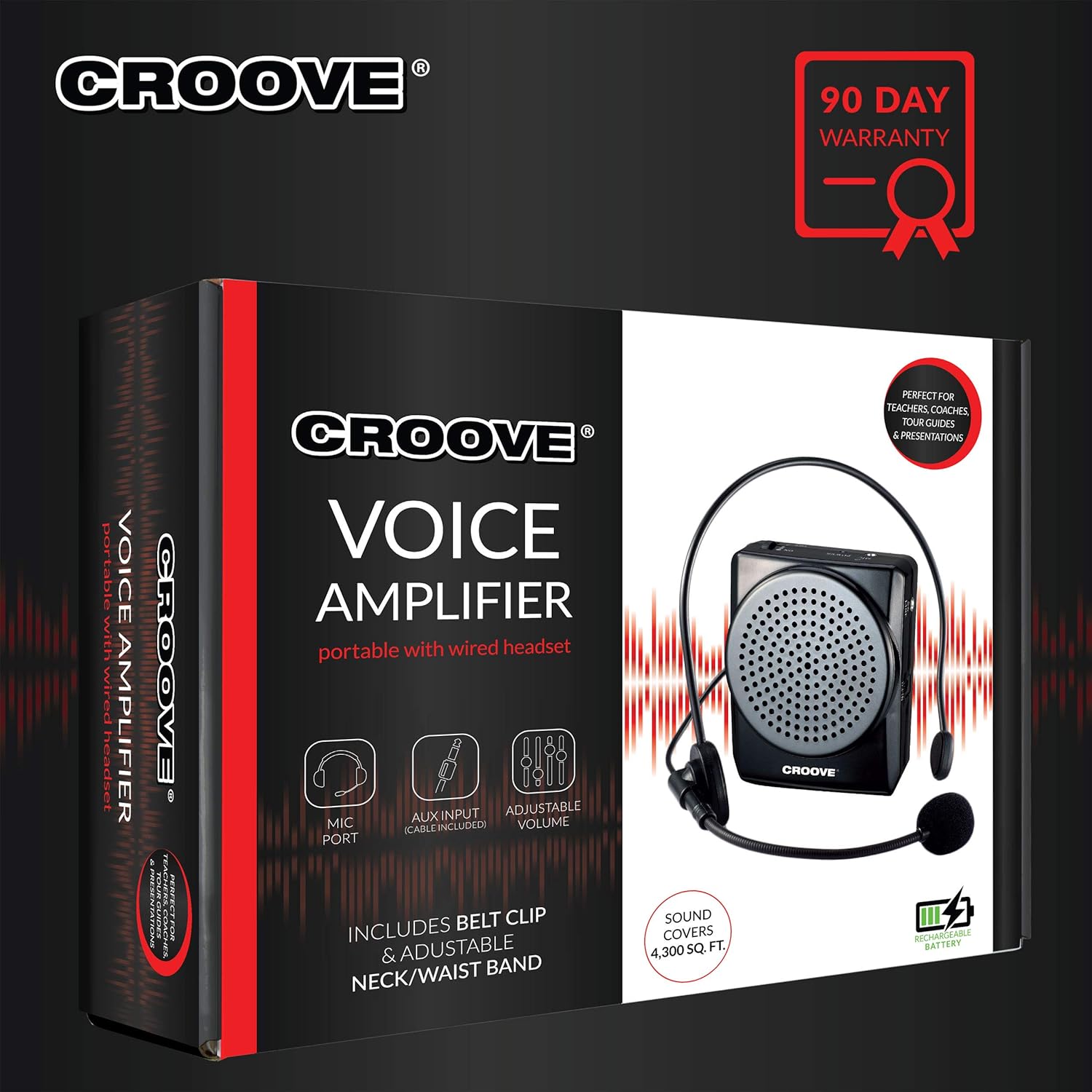 Croove Rechargeable Voice Amplifier, with Waist/Neck Band and Belt Clip, 20 Watts. Very Comfortable Headset