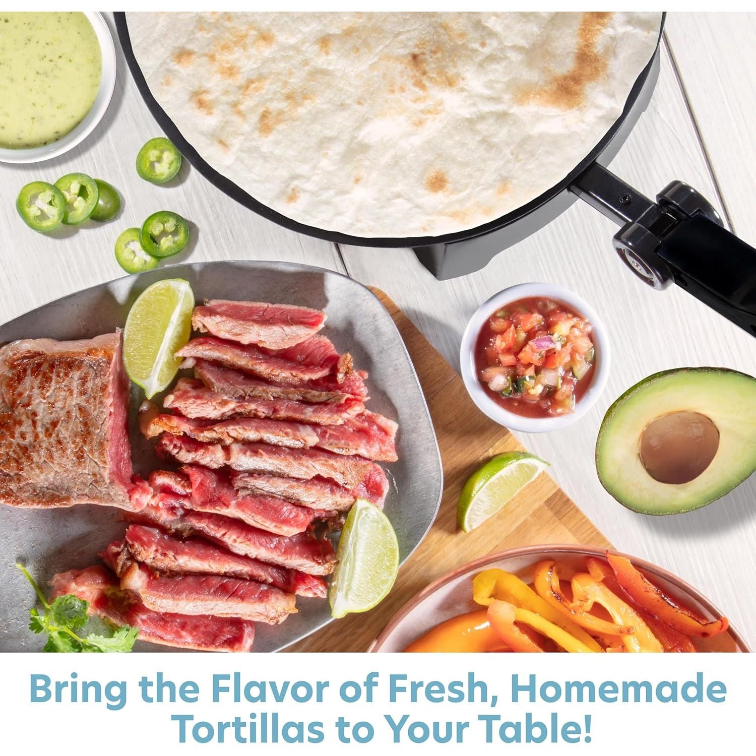 - Flatbread and tortilla maker is easier than a tortilla press- flattens and bakes 10-inch tortillas or flatbreads.