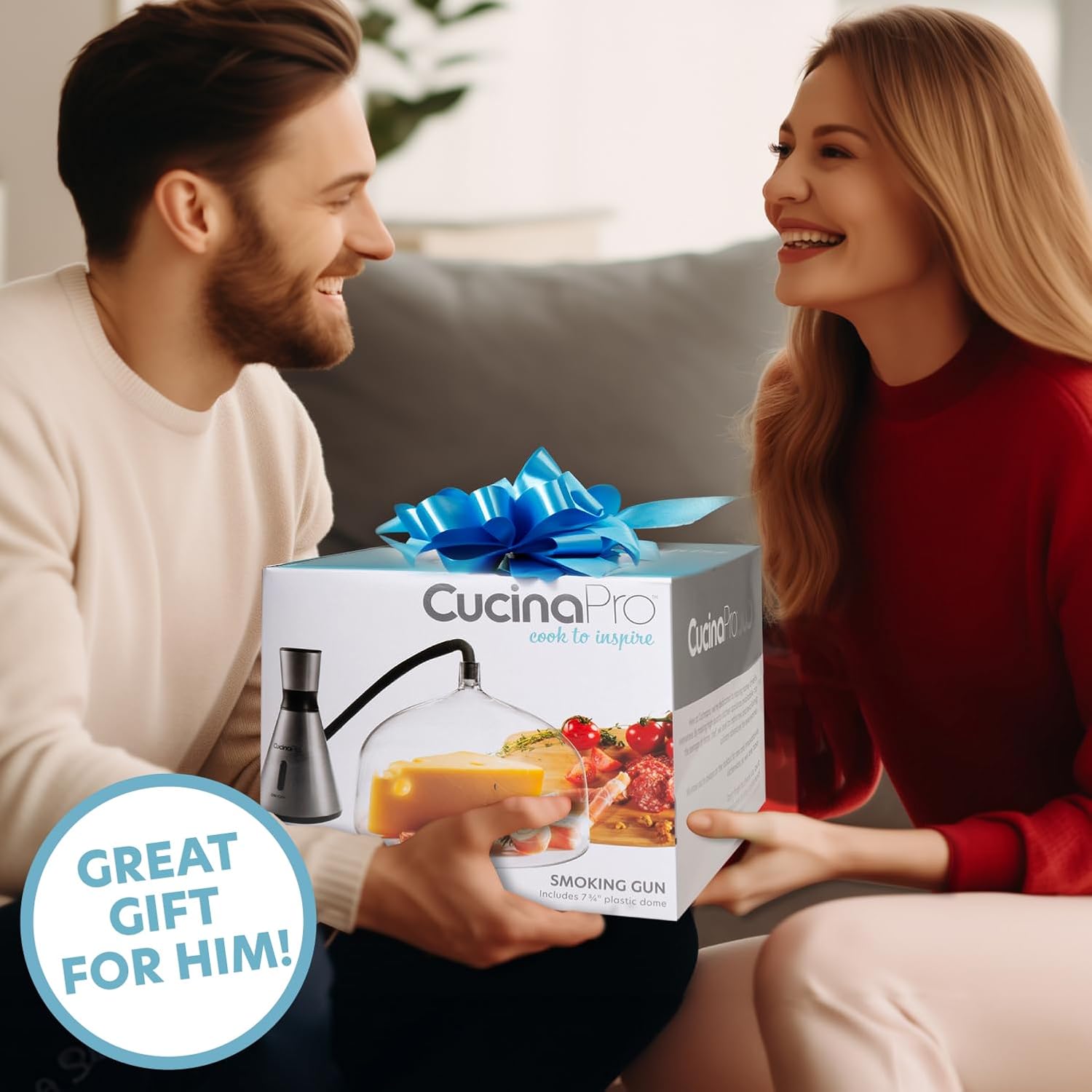 - CucinaPro Handheld Smoking Gun Food Smoker with Large Dome Lid- Portable Cold Smoke Infuser for Meat Cheese Cocktails, BBQ, Nuts, Fish- Kitchen Smoke Machine Adds Flavor with Wood Chips- Gift for Him