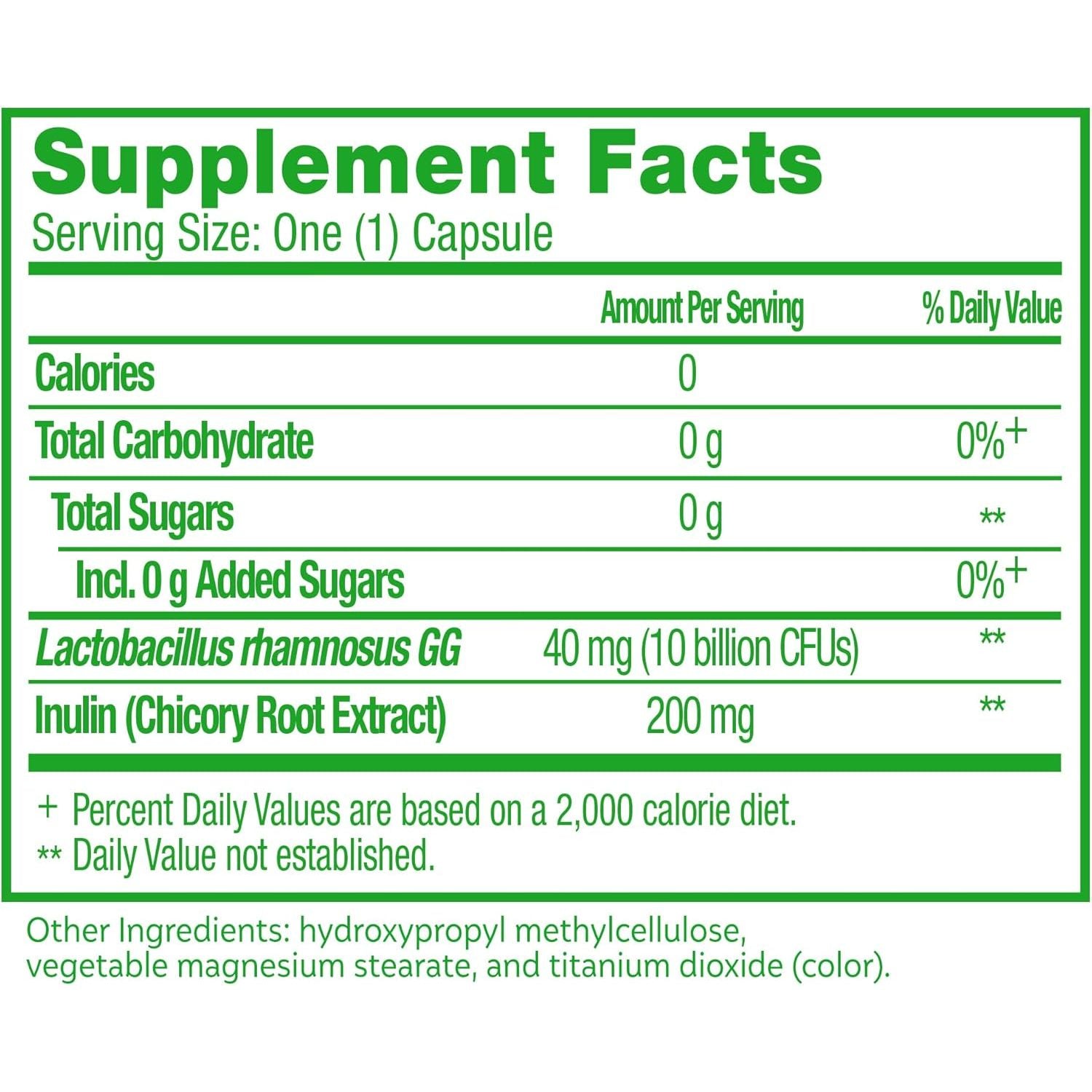 - DAILY DIGESTIVE HEALTH* – LGG is naturally sourced and scientifically proven to work in harmony with your body to keep your digestive system in balance.* Helps with occasional digestive upset; including diarrhea, gas and bloating.* For daily use, take 1 vegetarian capsule per day.