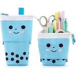 Cute Standing Pencil Case Pen Holder for Kids, Pop Up Stand UP Bubble Tea Pen Organizer Kawaii Stationary for Christmas Holiday New Year Office (Blue)