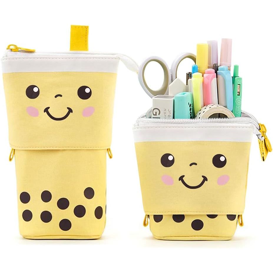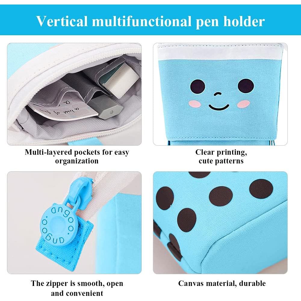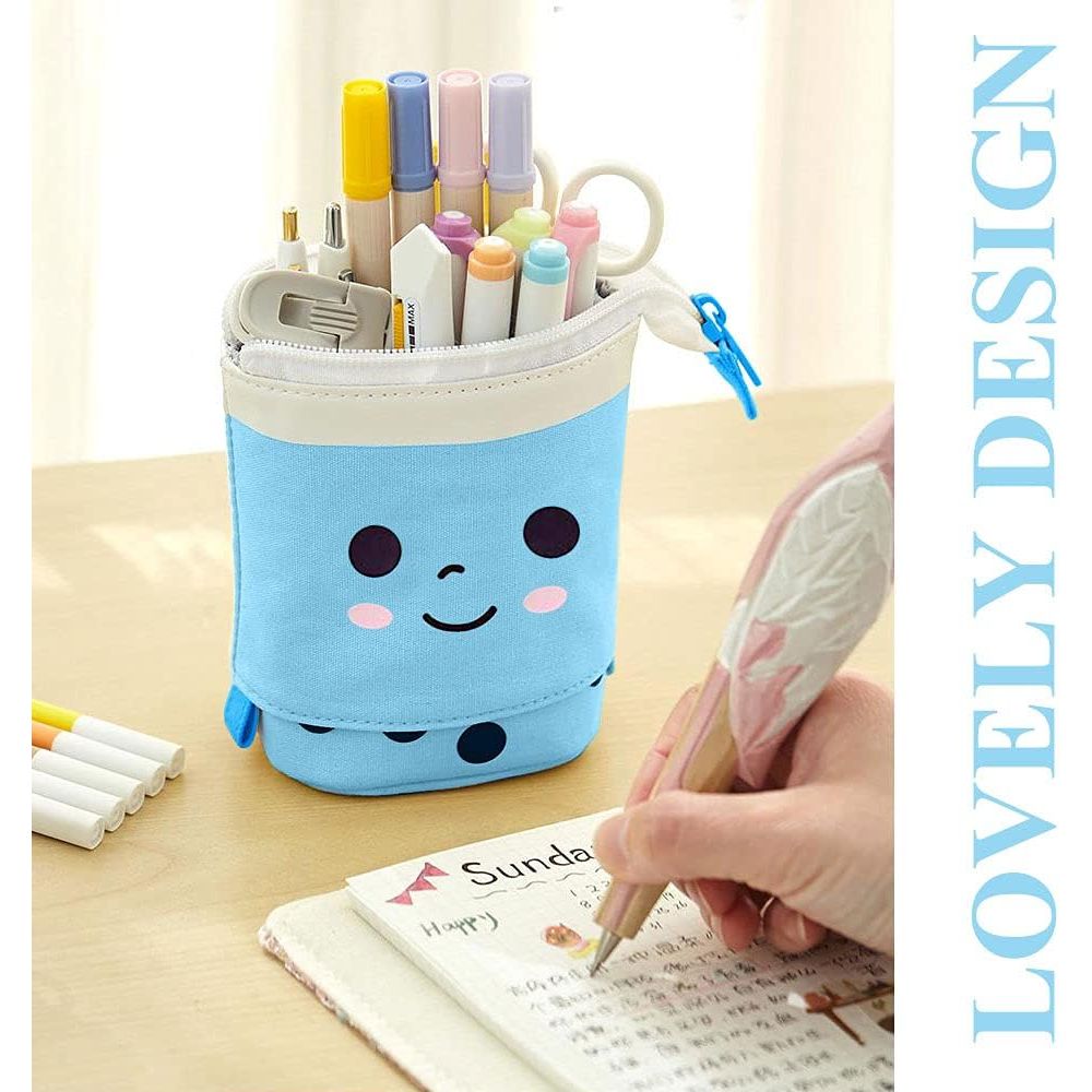 - Cute Standing Pencil Case Pen Holder for Kids, Pop Up Stand UP Bubble Tea Pen Organizer Kawaii Stationary for Christmas Holiday New Year Office (Blue)