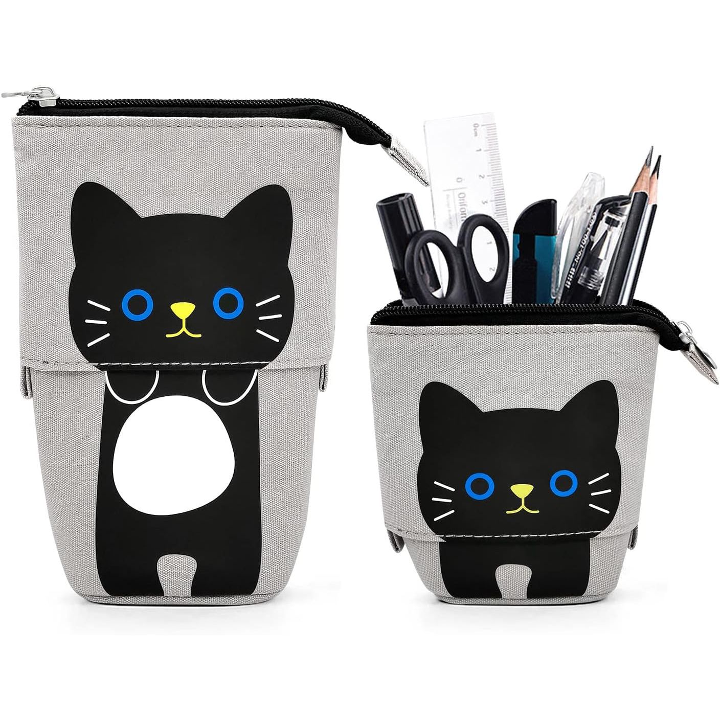 - Cute Pencil Box: There are two cute handles on both sides of the kawaii pencil case, the top can be pull up or slid down to adjust the height of the stand up pencil case, Pull the pouch up and down to transfer it. Size: 7x5.1x2.36in