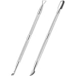 • 5 in 1 Manicure and Pedicure Tool Set -- Including cuticle trimmer, cuticle pusher cutter flat head, cuticle pusher cutter sharp head, dead skin fork and triangle nail polish scraper. Use the flat head to gently push back the cuticles on your nails; Use the trimmer to neaten cuticles. Use the triangle head to peel or remove gel nail polish; Use the cuticle pusher cutter sharp head push down the cuticles at the corners of your nails. They are great beauty tools for manicure and pedicure.