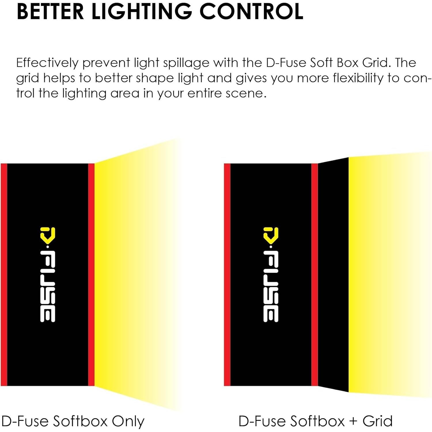 - COMPACT & FOLDABLE SOFTBOX GRID: The D-Fuse Softbox Grid is a compact and foldable softbox grid that can be attached to the D-Fuse Softbox to help control light spillage.