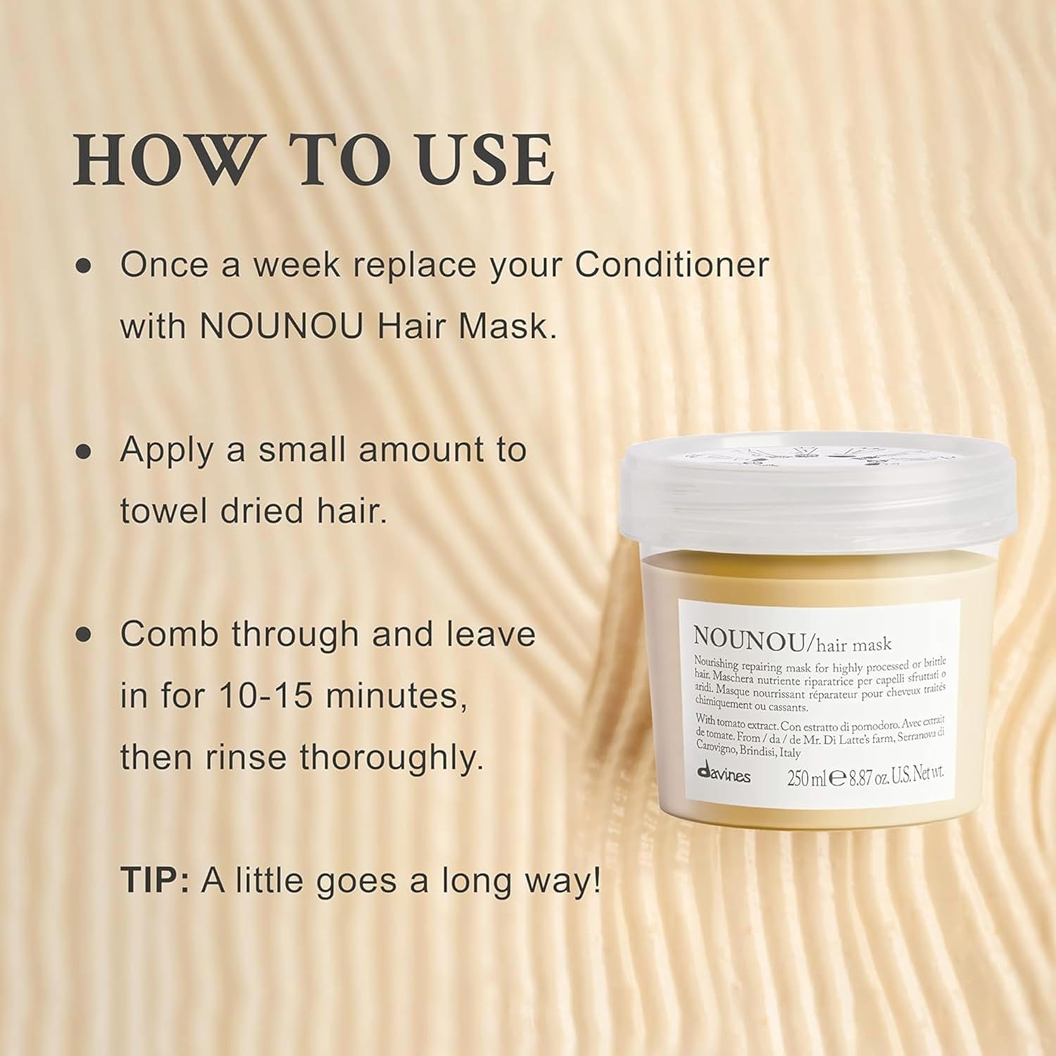 - Davines NOUNOU Hair Mask, Nourishing And Repairing Treatment For Bleached, Permed Or Relaxed Hair, Add Shine Weightlessly