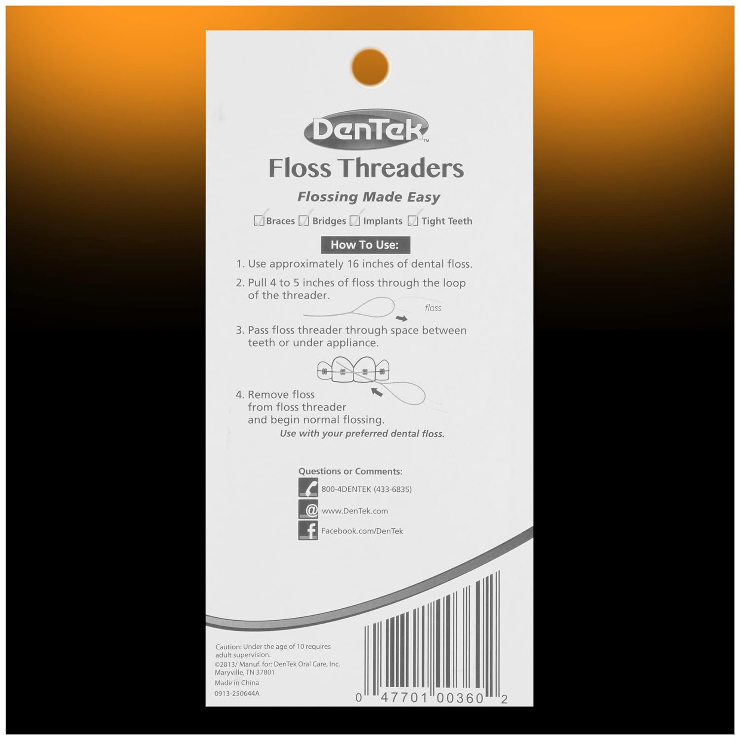 - DenTek Floss Threaders for Braces, Bridges & Dental Implants, 50 Count