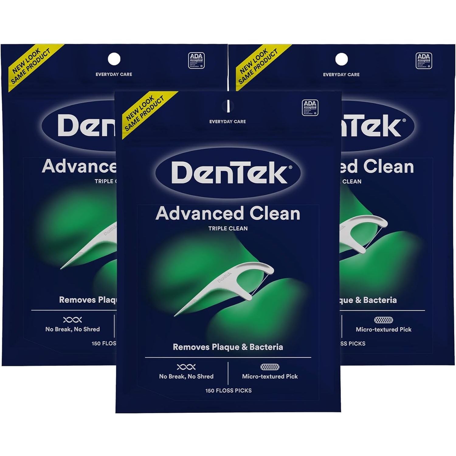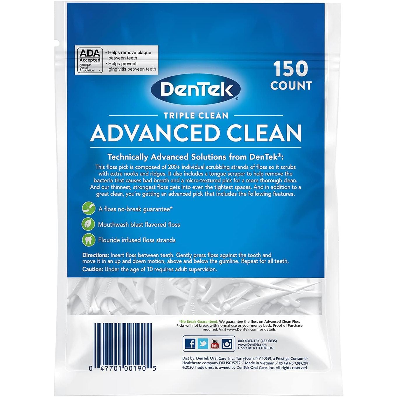 - DenTek Triple Clean Advanced Clean Floss Picks, No Break & No Shred Floss, 150 Count, (Packaging May Vary)