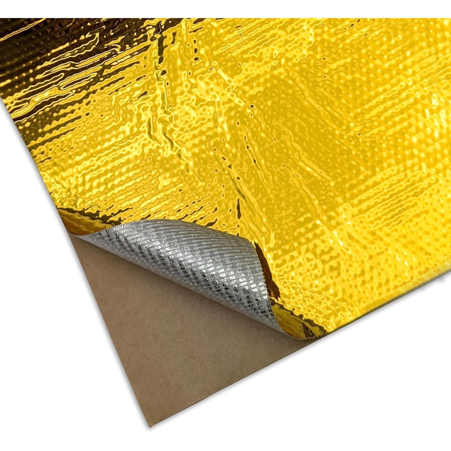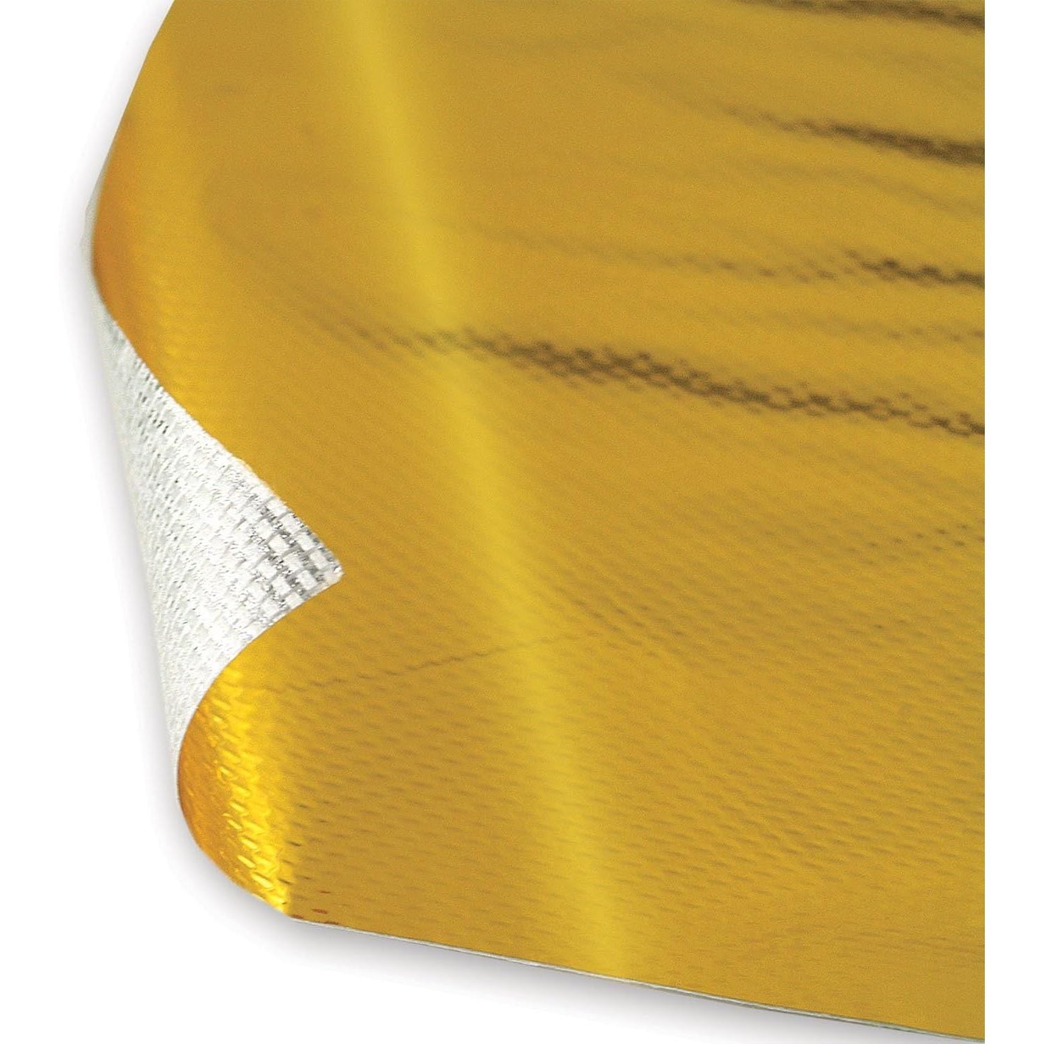 - DURABLE HEAT SHIELD: Reflect-A-Gold is a metalized polyimide laminated glass cloth with a high-temp pressure-sensitive adhesive. Handles continuous heat up to 800°F. Adhesive protected by a release liner rated up to 325°F.
