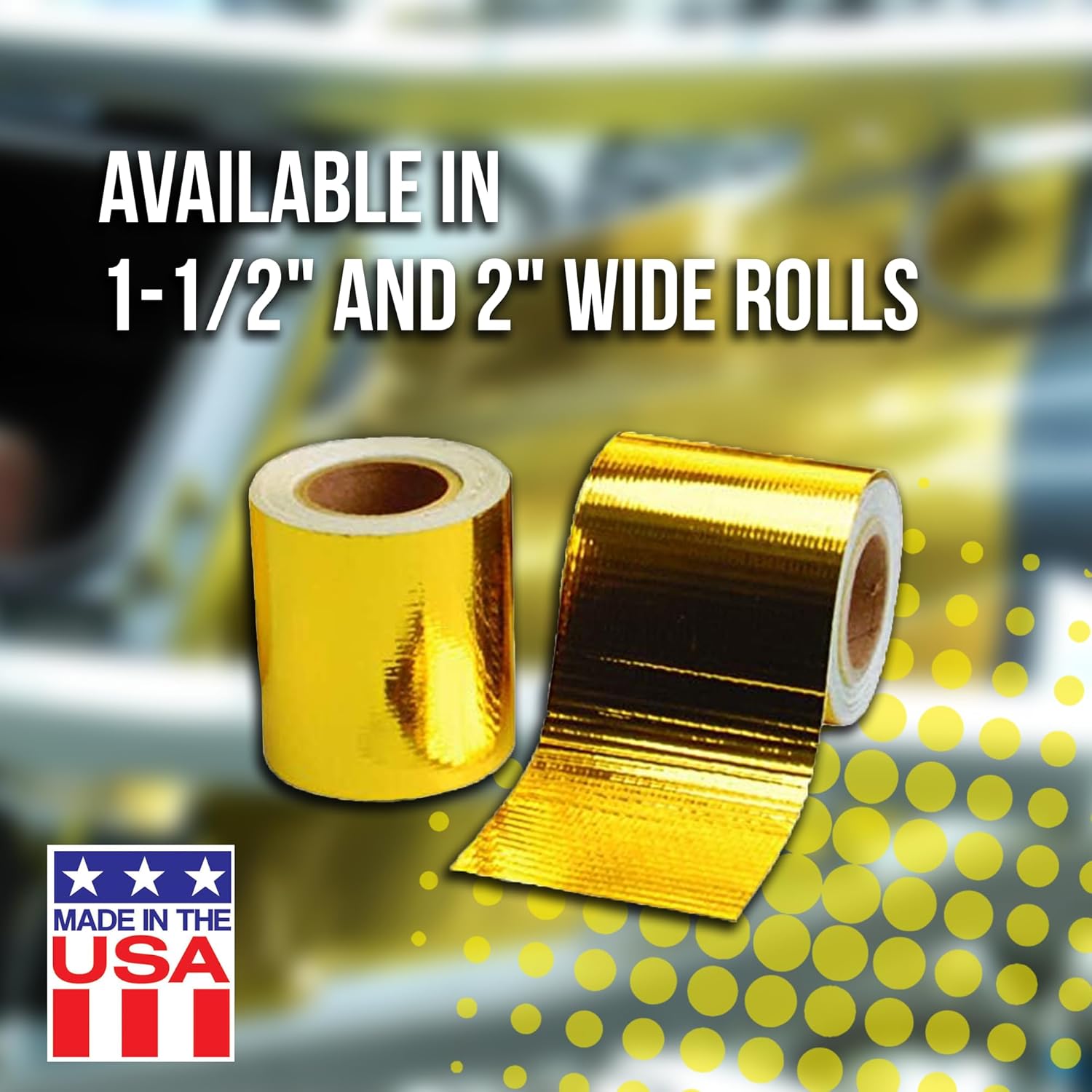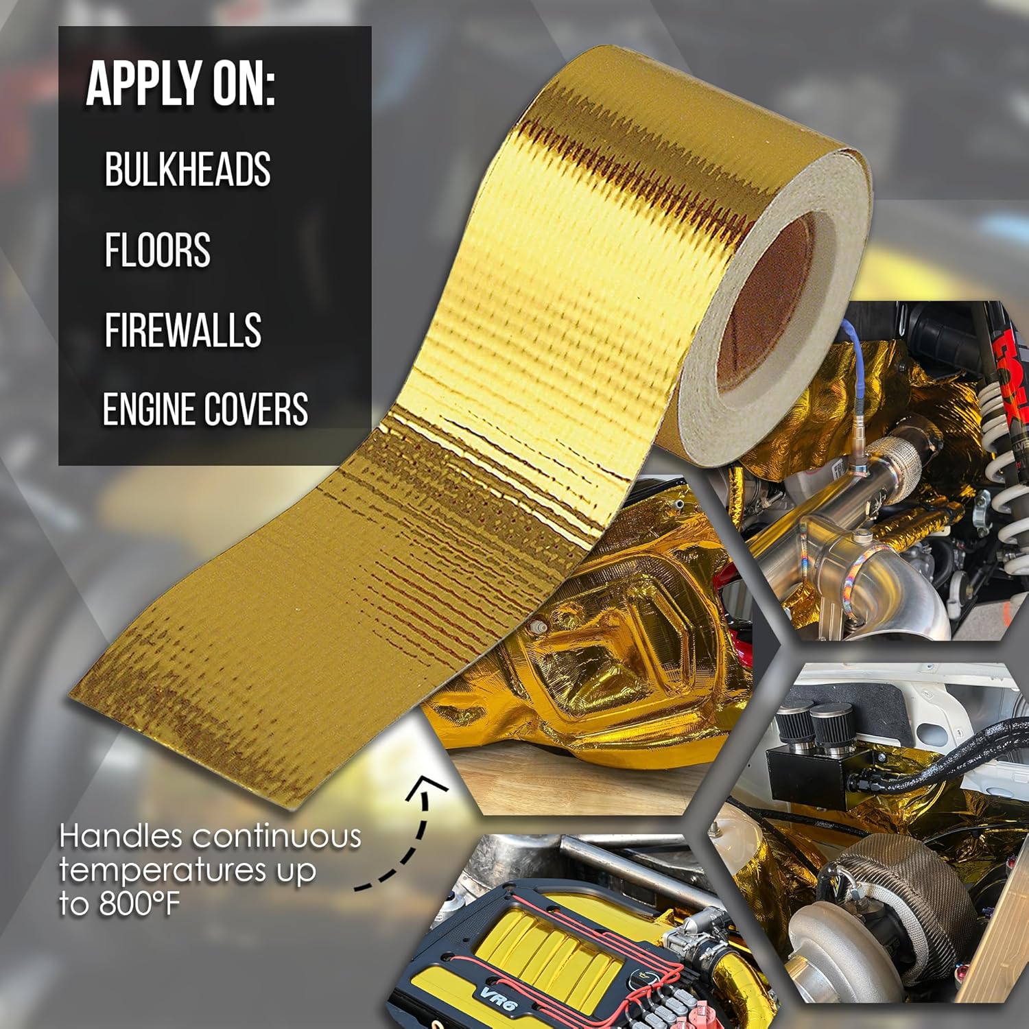 - HEAT SOAK FIX: Reflect-A-Gold solves heat soak issues in air boxes, seats, firewalls, transmission tunnels, wires, and intake systems. High-temp heat shielding for all automotive applications. Available in 1.5" and 2" wide rolls, 0.0065" thick.