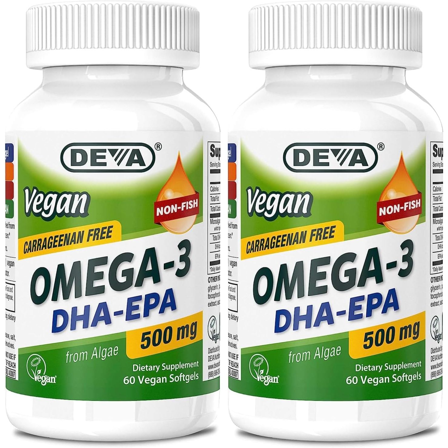 DEVA Vegan Omega-3 DHA-EPA 500MG – No Carrageenan, Non-Fish Oil Derived from Algae, Non-GMO, 60 Gelatin-Free Softgels
