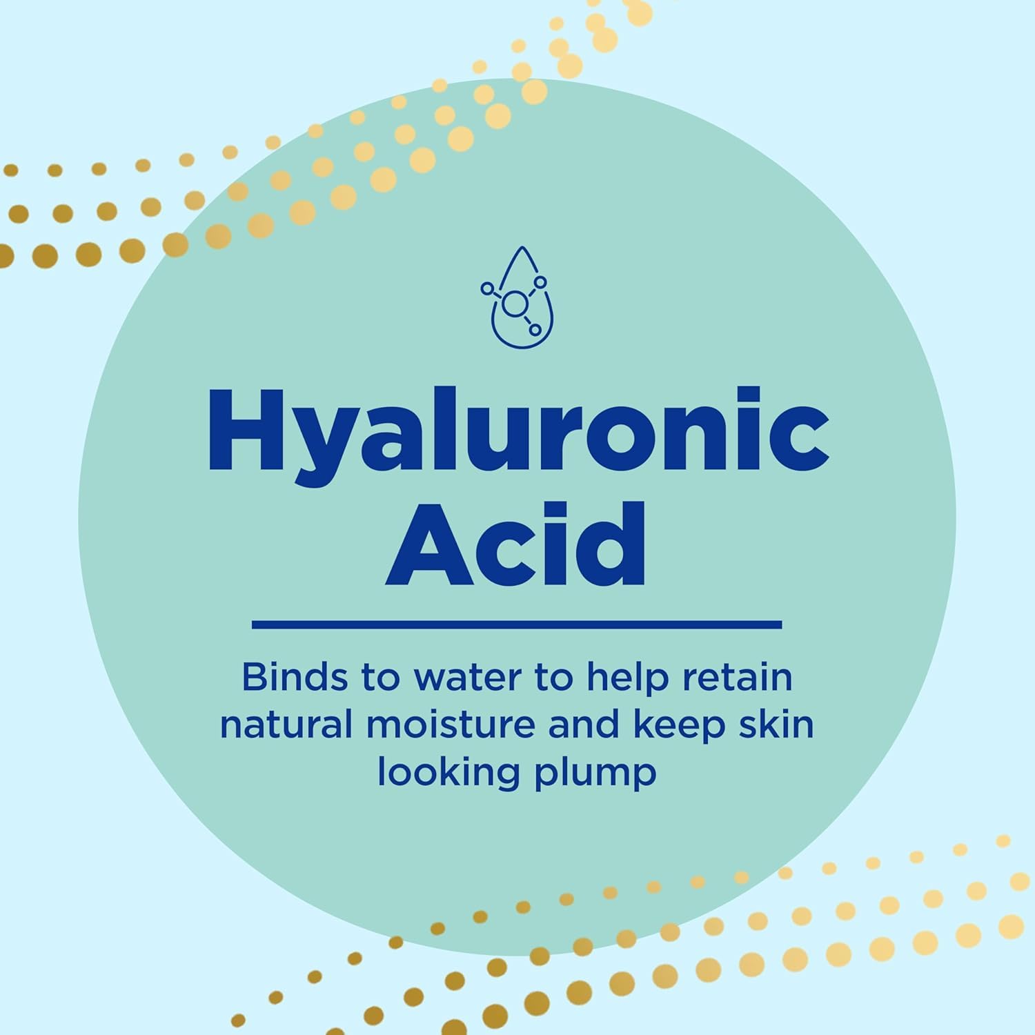 • Hyaluronic acid is naturally found in skin and binds to water to help retain natural moisture and keep skin looking plump