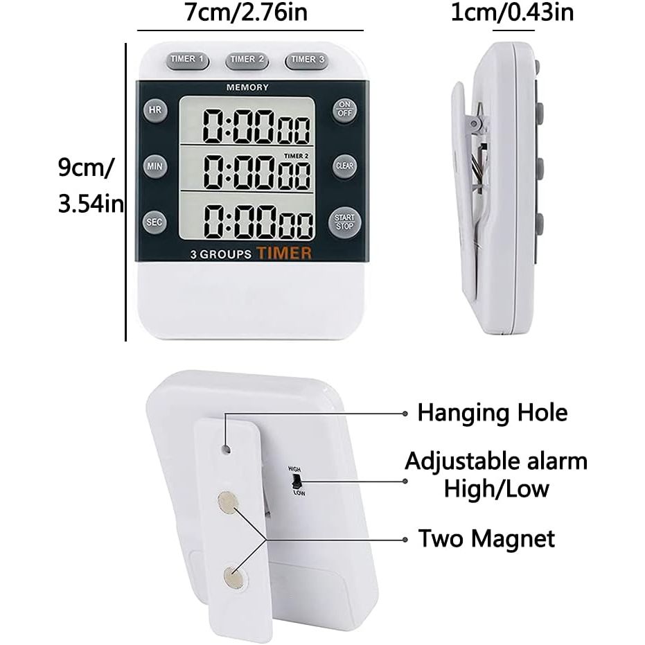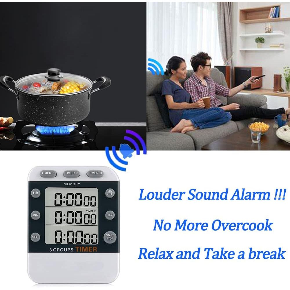 - Digital Dual Kitchen Timer for Cooking, 3 Channels Count Down/up Triple Multi Timers for Food, Magnetic Memory-Preset Large-Display Adjustable Alarm Volume, 3A Battery Included