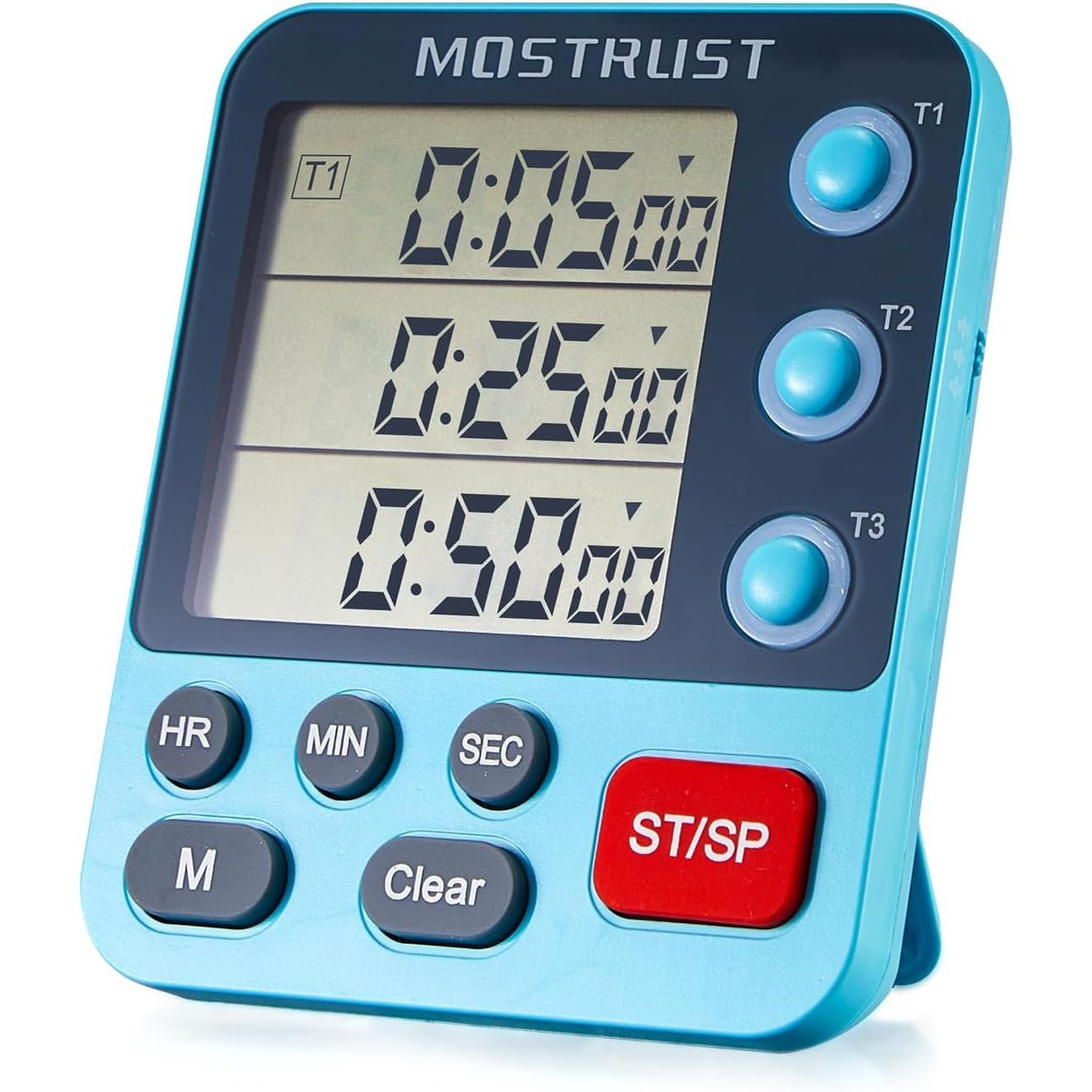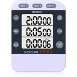 - TRIPLE COUNT UP/DOWN TIMER -- You can have all three timers (Timer1-Timer3) performing count down operations at the same time. It can be set with a pretty wide range from 00:00:00 to 99 Hours, 59 minutes and 59 Seconds.This dual kitchen timer is ideal for cooking, barbecue, baking, exercise, gym workout, sports, homework, games, kids activities and meetings