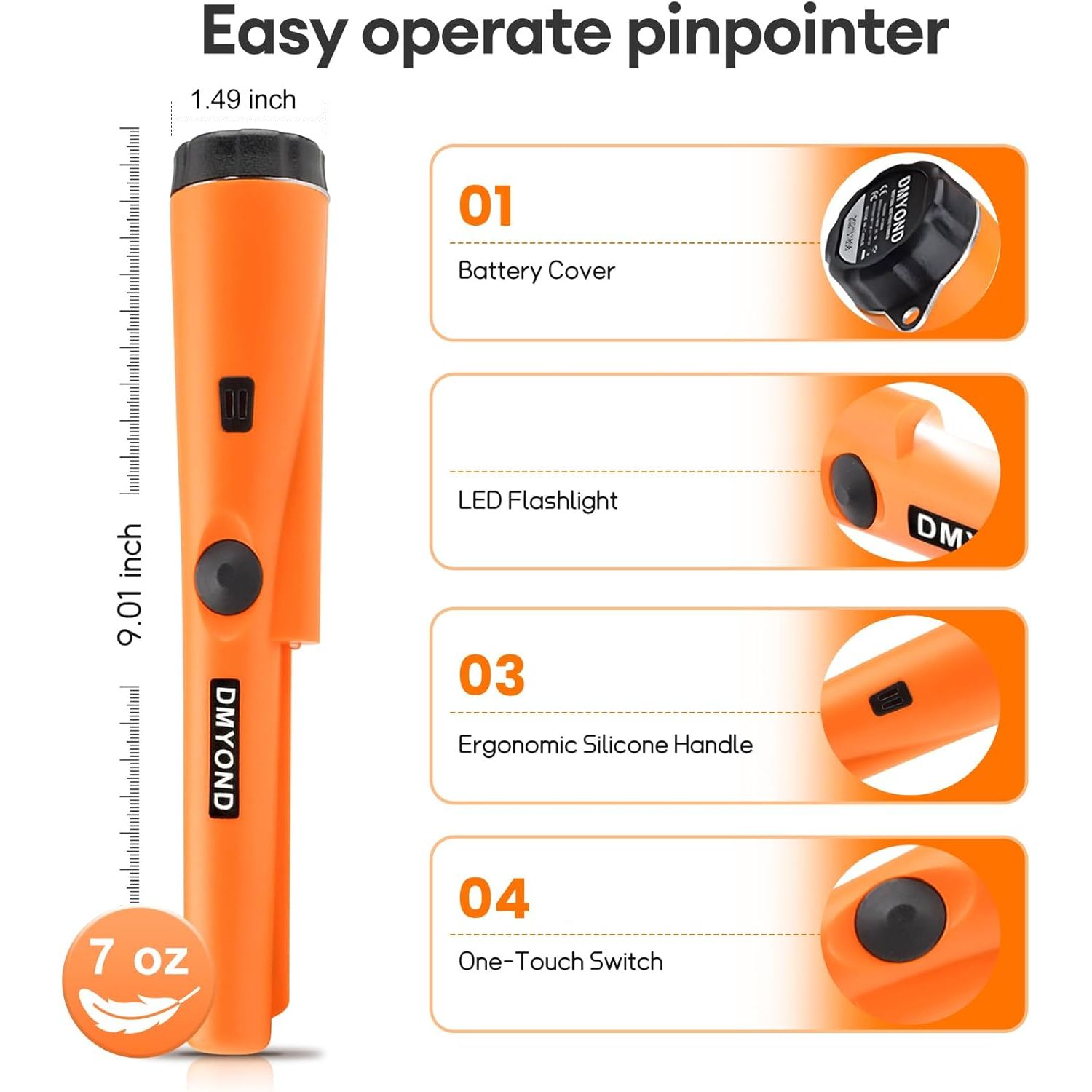 - Dmyond Metal Detector Pinpointer, Professional Waterproof Handheld Pin Pointer Wand, Search Treasure Pinpointing Finder Probe with 9V Battery for Adults, Kids - Orange