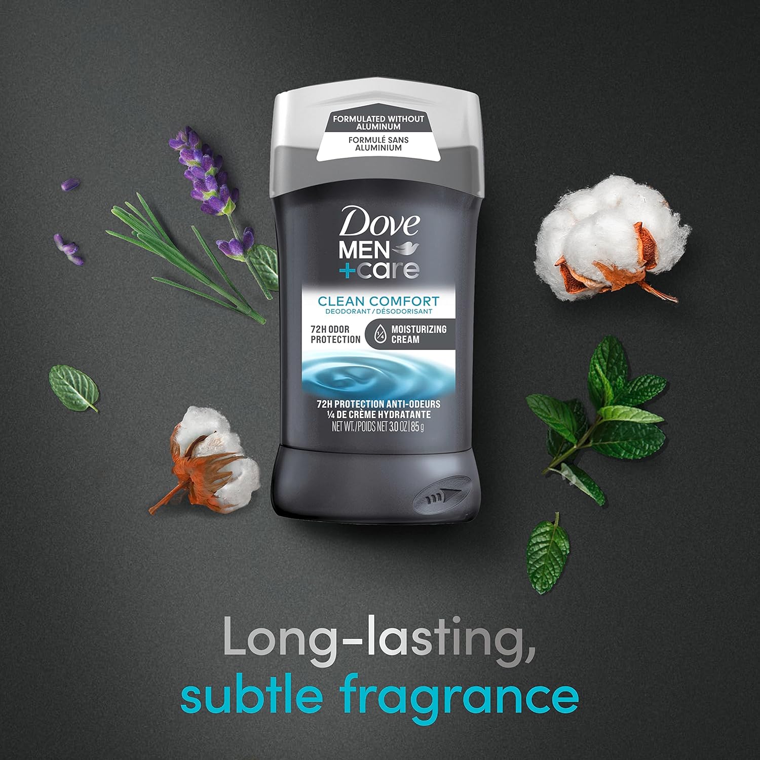 - Dove Men+Care Deodorant Stick for Men Clean Comfort Aluminum Free 72-Hour Odor Protection Mens Deodorant with 1/4 Moisturizing Cream 3 oz