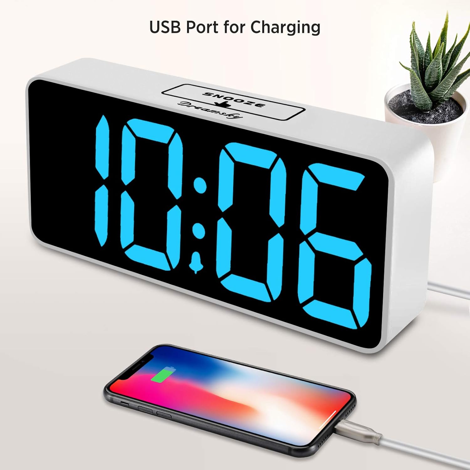 DreamSky Minimalist Digital Alarm Clock Attractive look and streamline design with large bold clear number display. Time is easy to see at a glance and from a far distance. Your Ideas Matter! DreamSky values customers' voices and this simple, handy and easy to use digital alarm clock is exactly designed for you! Adapter Powered Only with Memorized Battery Power adapter is required as the power source of this product and batteries (not included) only work for storing the clock settings in the case of power cut. 0%-100% Full Range Dimmer The display brightness is 0-100 level adjustable. Needless worry the brightness, either too bright thus affecting your sleep or too dark to read time, ensuring your maximum visual comfort and a soothing pleasing sleep at night. Extra USB Port for Charging An extra USB charging port allows you to charge your cellphone, pad or other electronic devices any time. Handy and convenient.